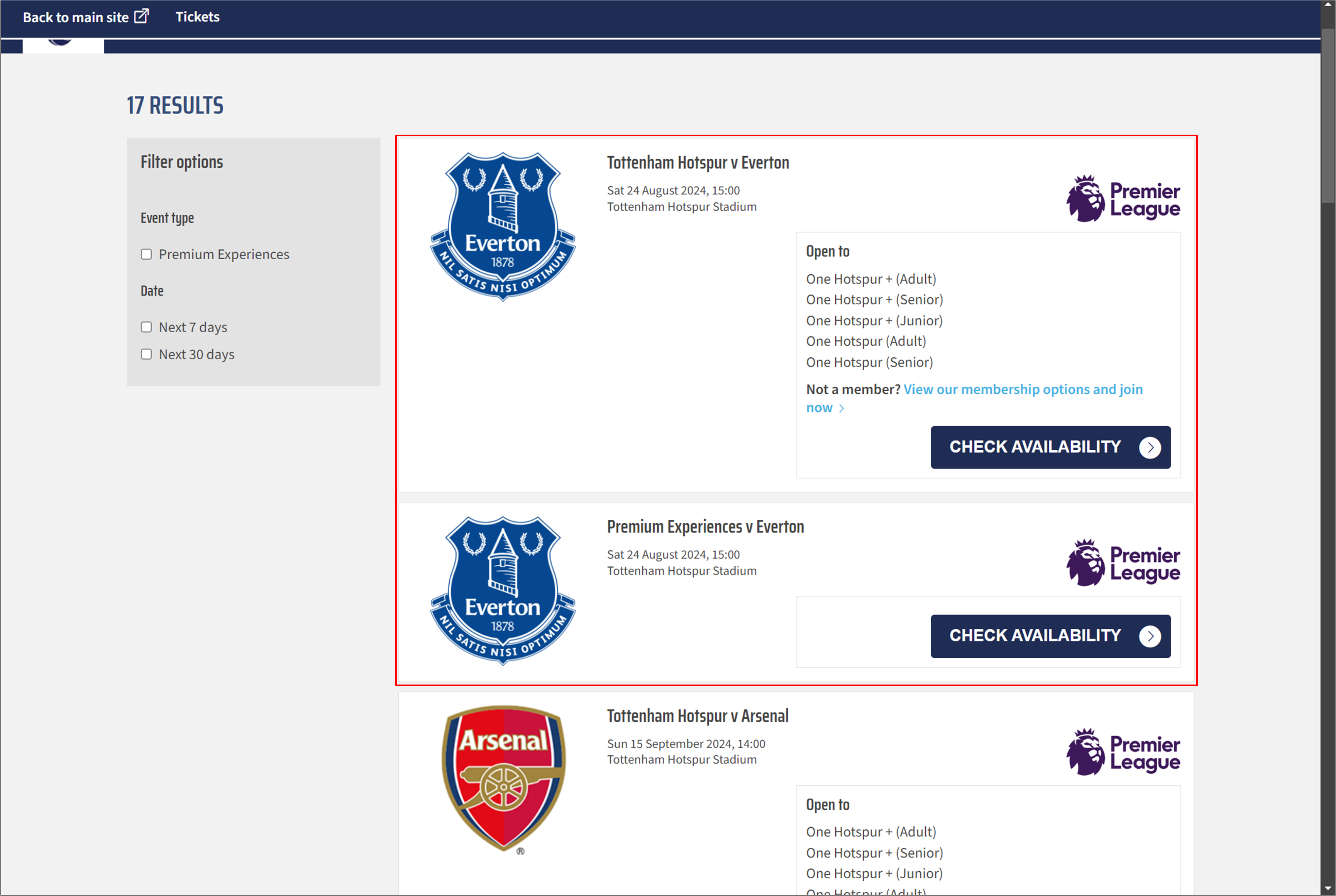 [ 토트넘 홋스퍼 티켓팅 홈페이지 ]