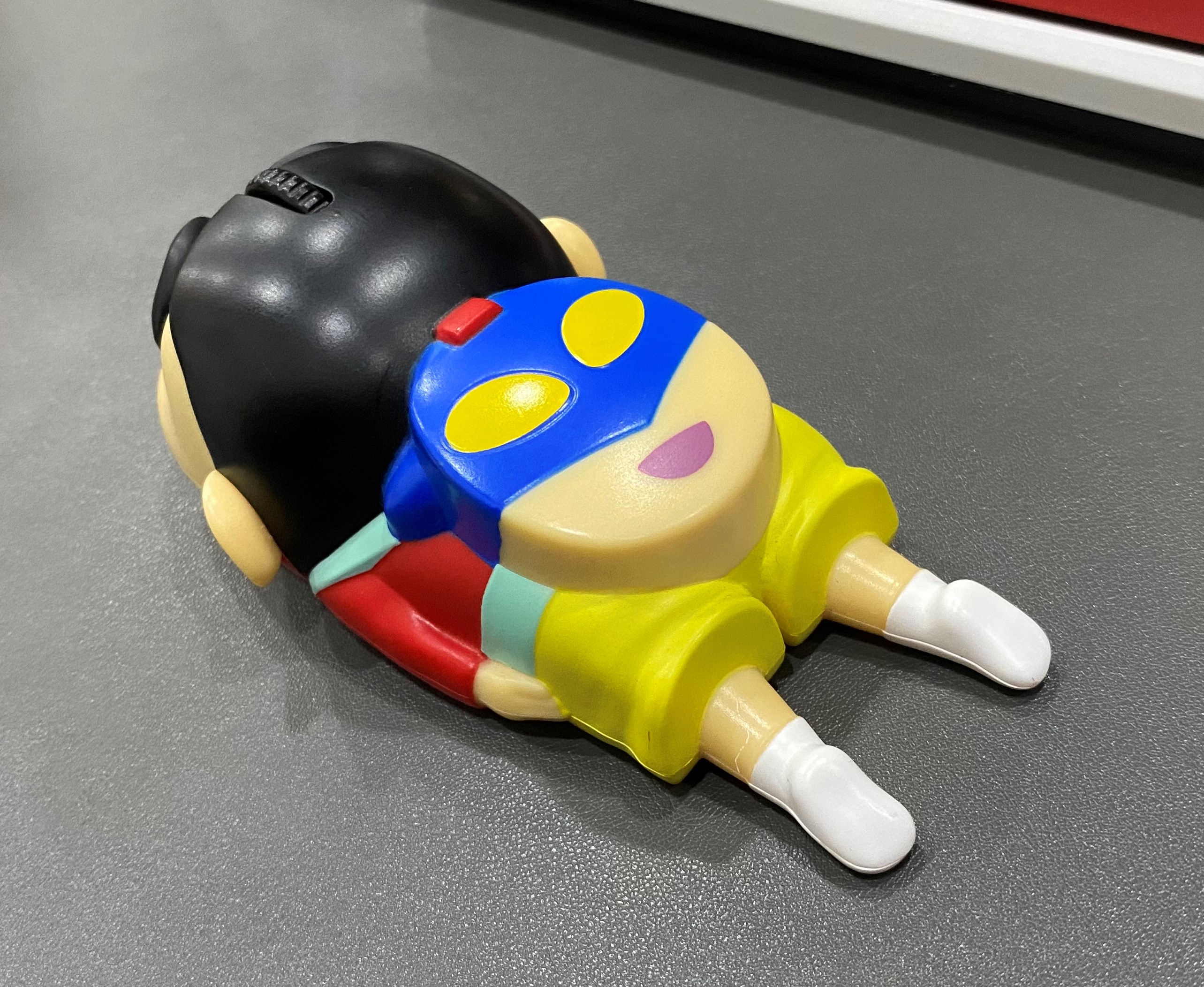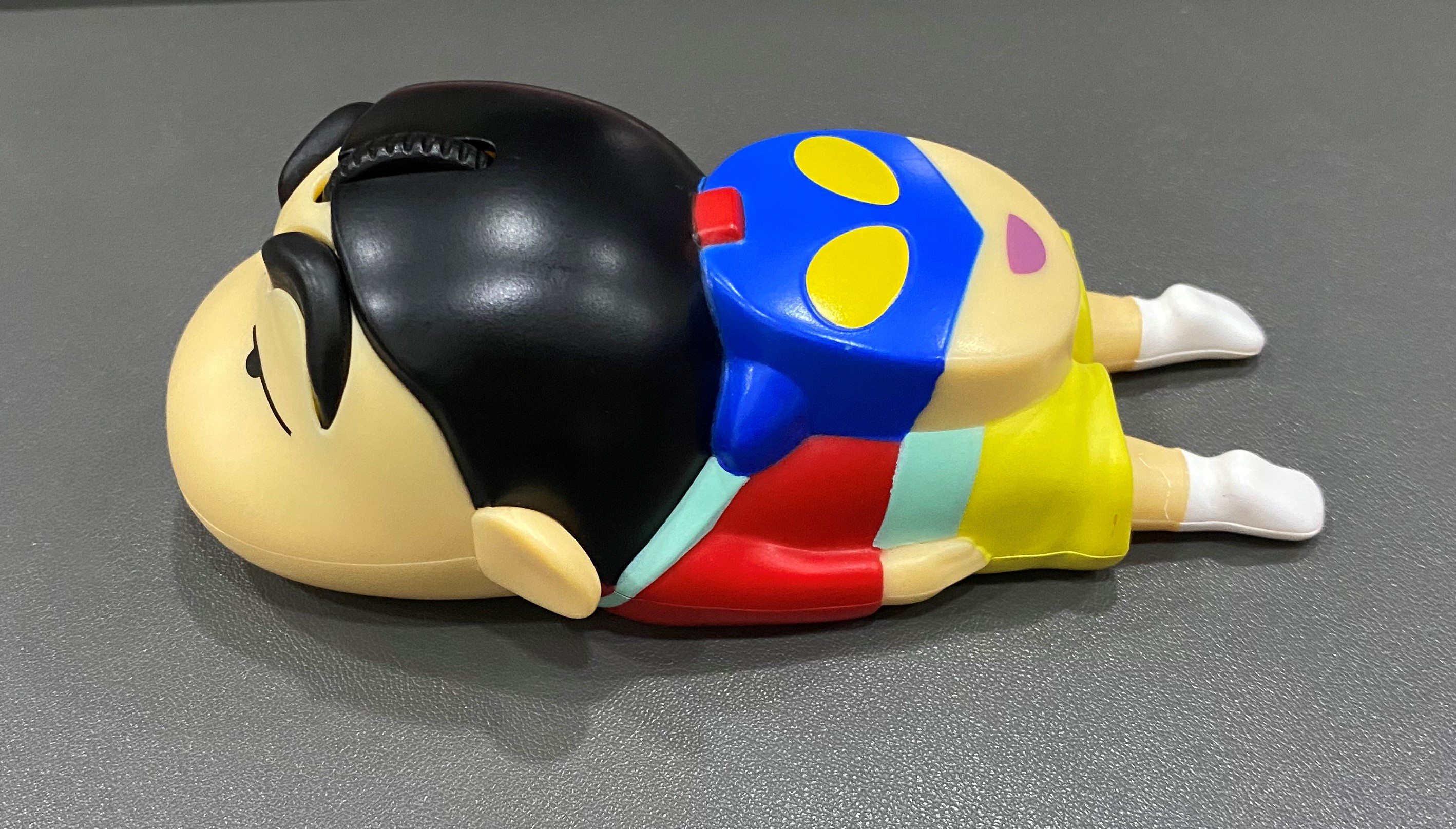 액션가면 가방을 멘 짱구가 학원에서 돌아와서 집에 가자마자 축 늘어진 모습이다. (뇌피셜)