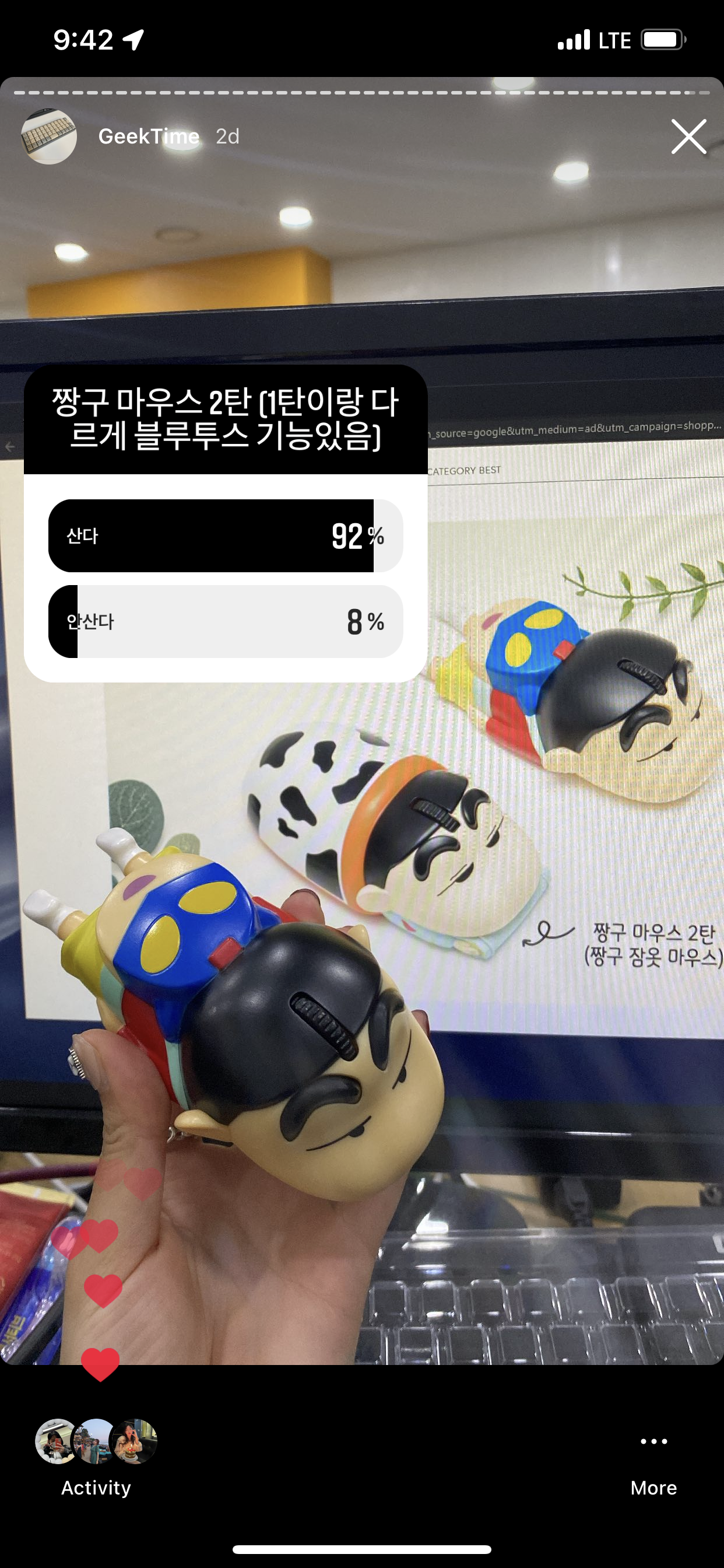 얼마 전에 짱구마우스 2탄이 새로 나온 것을 보고 인스타 무물로 산다 vs. 안산다 스토리 올렸는데,