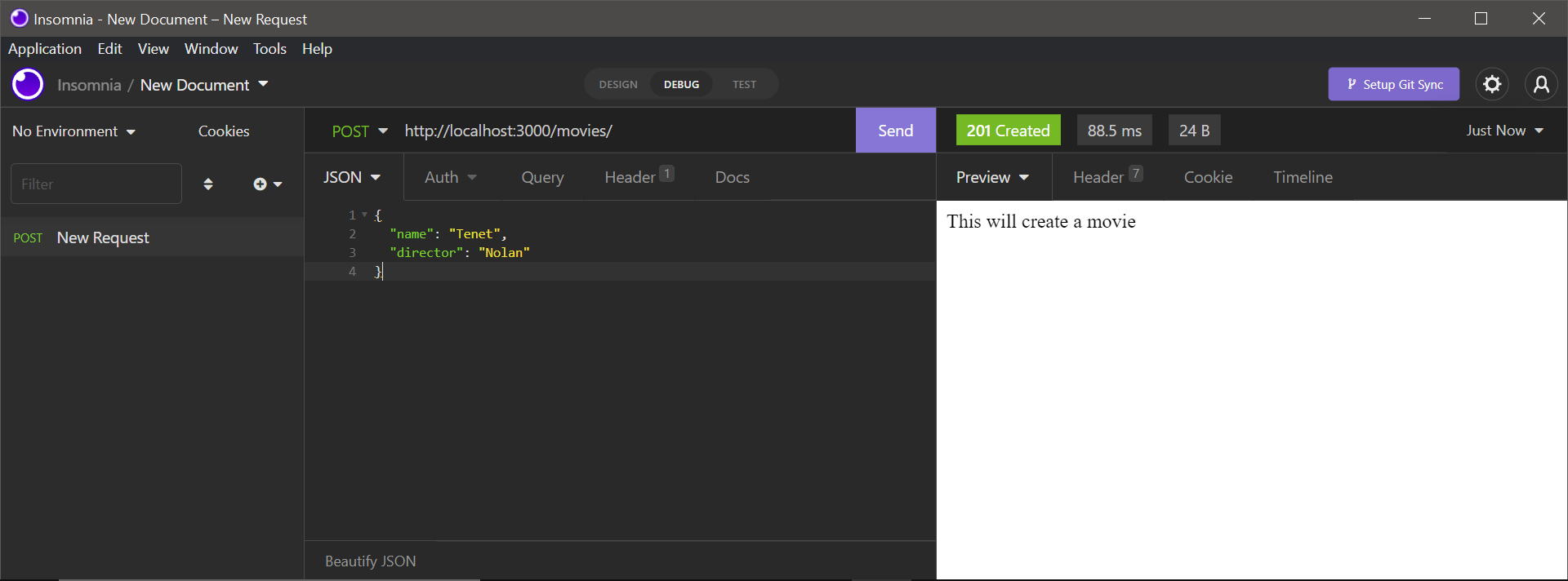 insomnia에서는 위와 같은 방식으로 Get, Post, Put 등을 테스트해볼 수 있음.