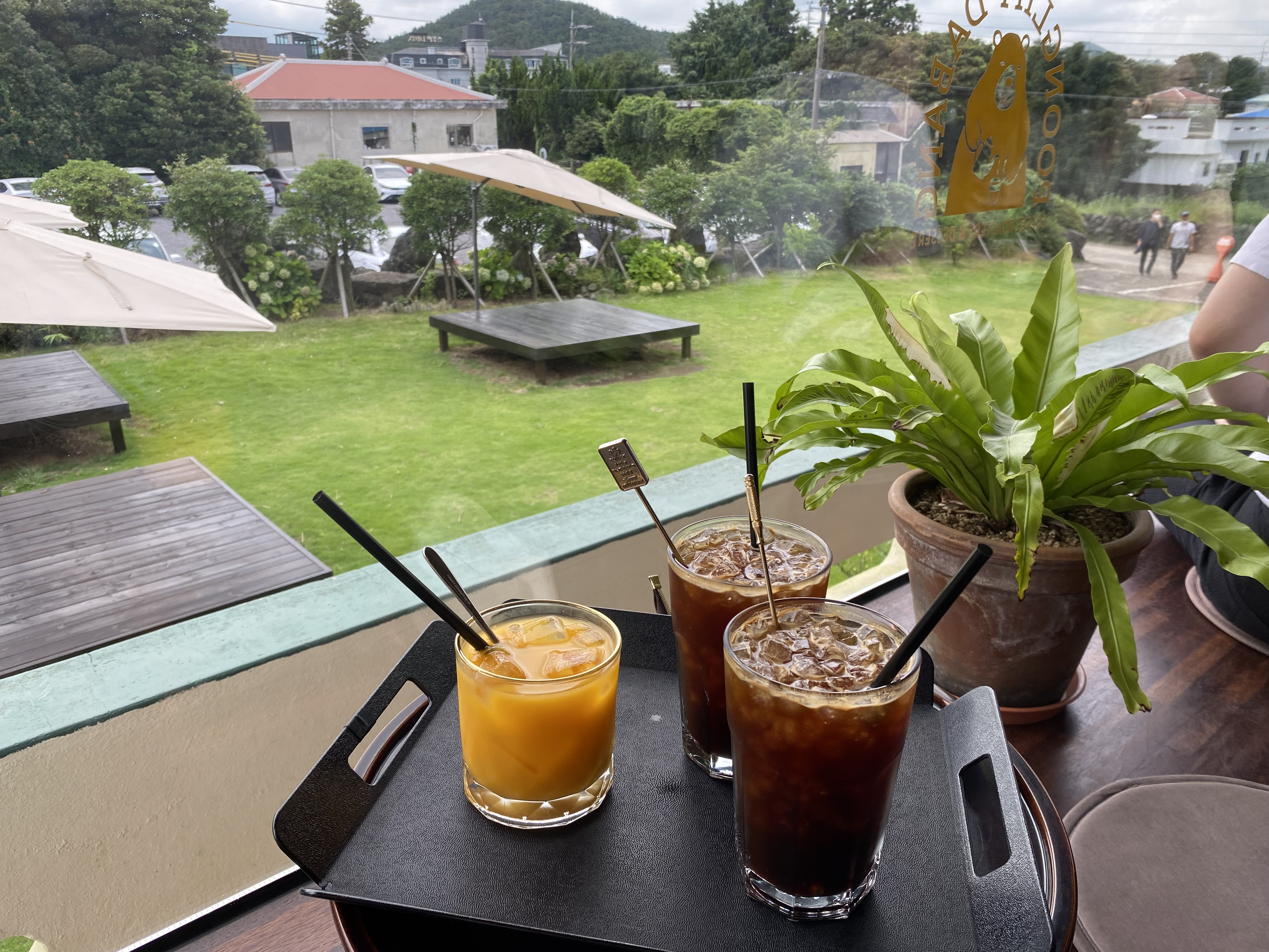 커피를 각자 한 잔씩 시키고 한라봉 주스도 시켰어요.