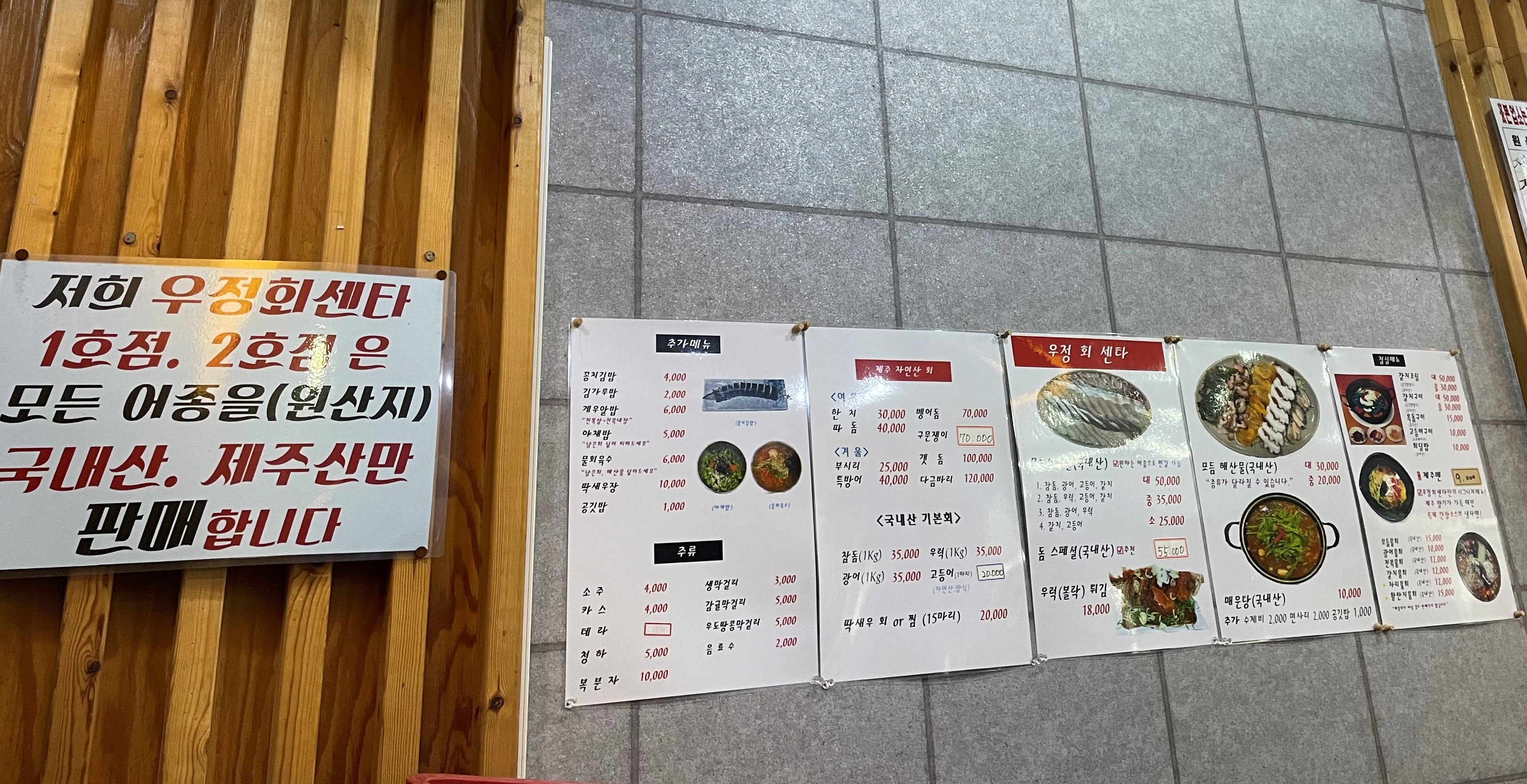 친구가 추천받은 곳이 있다 해서 우정회센타로 찾아갔습니다.