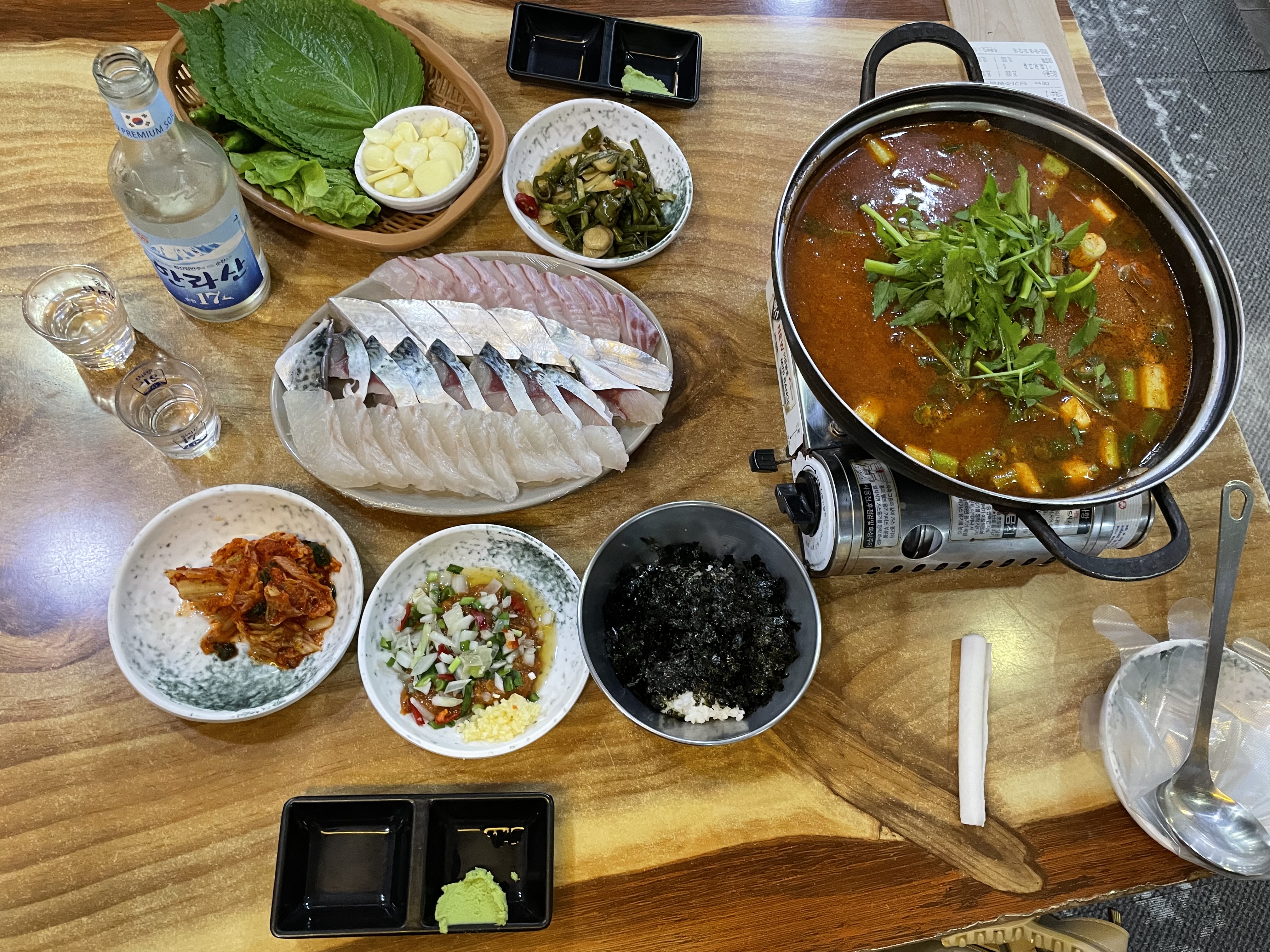 식당도 일찍 9시 50분에 닫는다고 해서 회랑 매운탕 바로 시켰습니다.