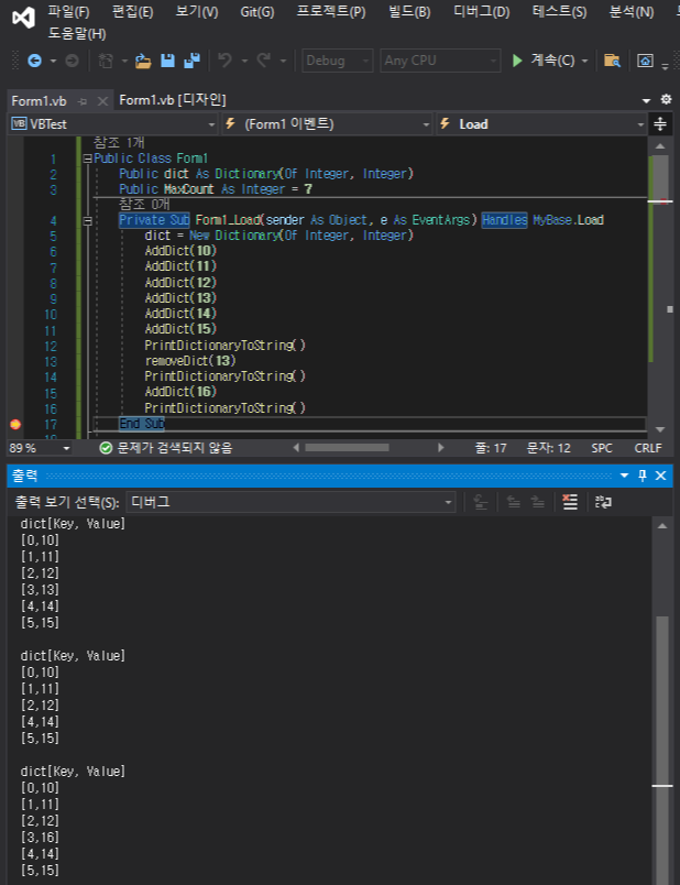 For index = 0 To MaxCount 'MaxCount는 임의의 값으로 Dictionary 최대값을 0-7로 정함