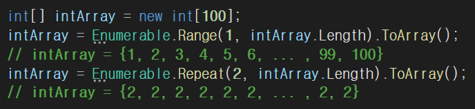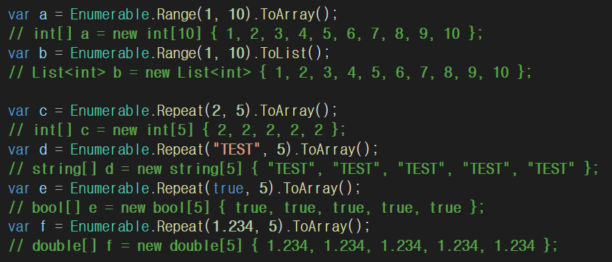Range나 Repeat을 이용하여 Array 혹은 List 생성 가능