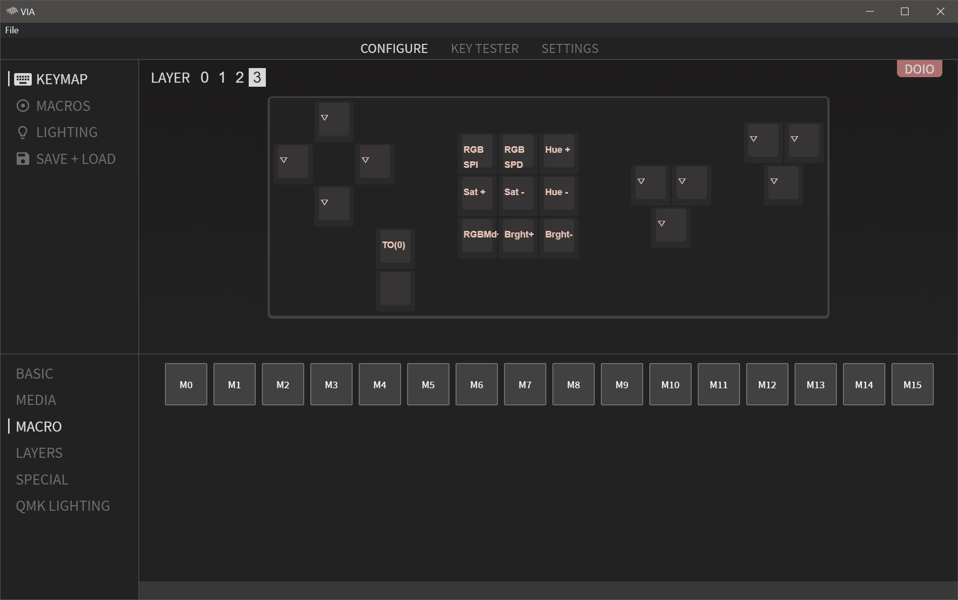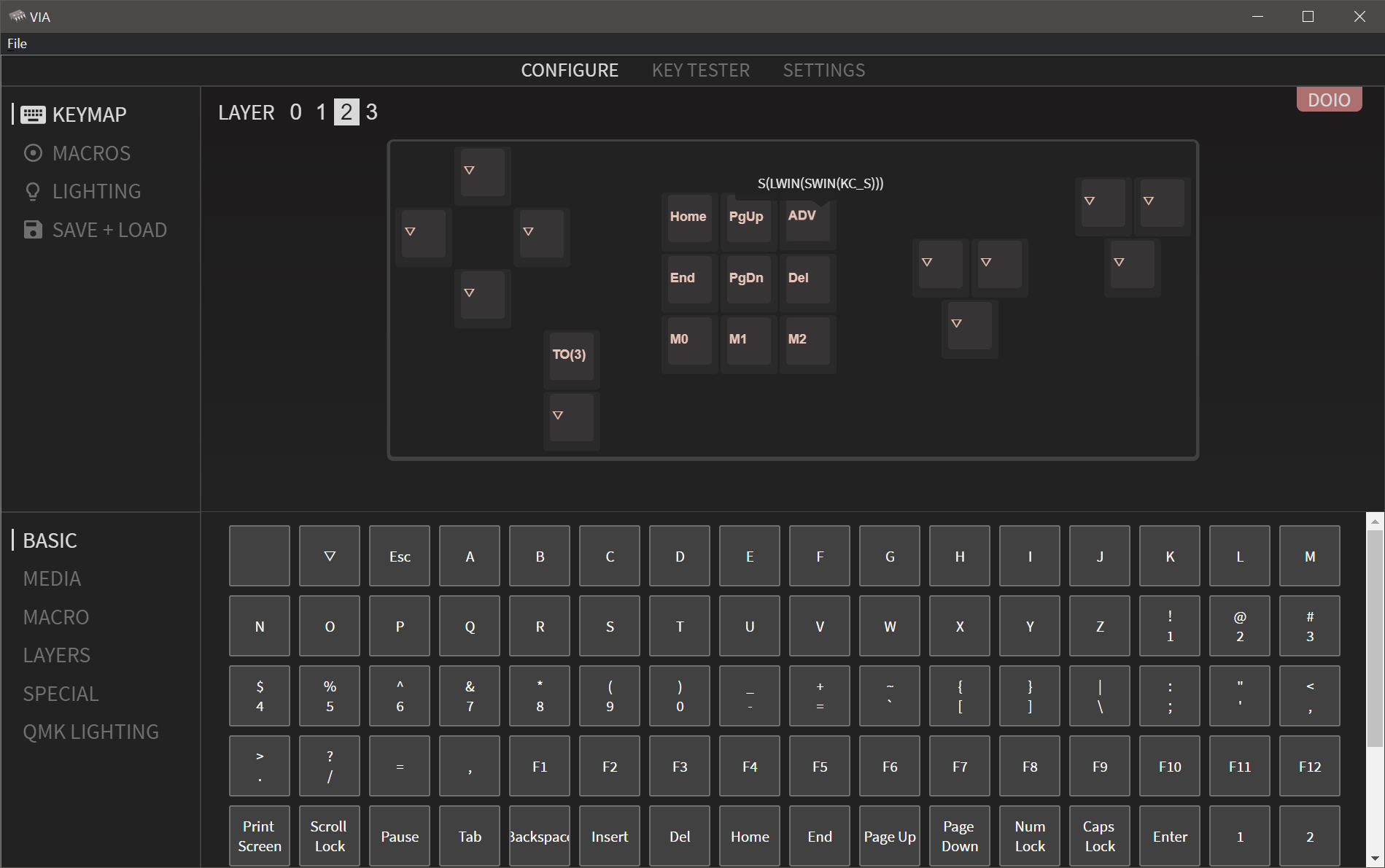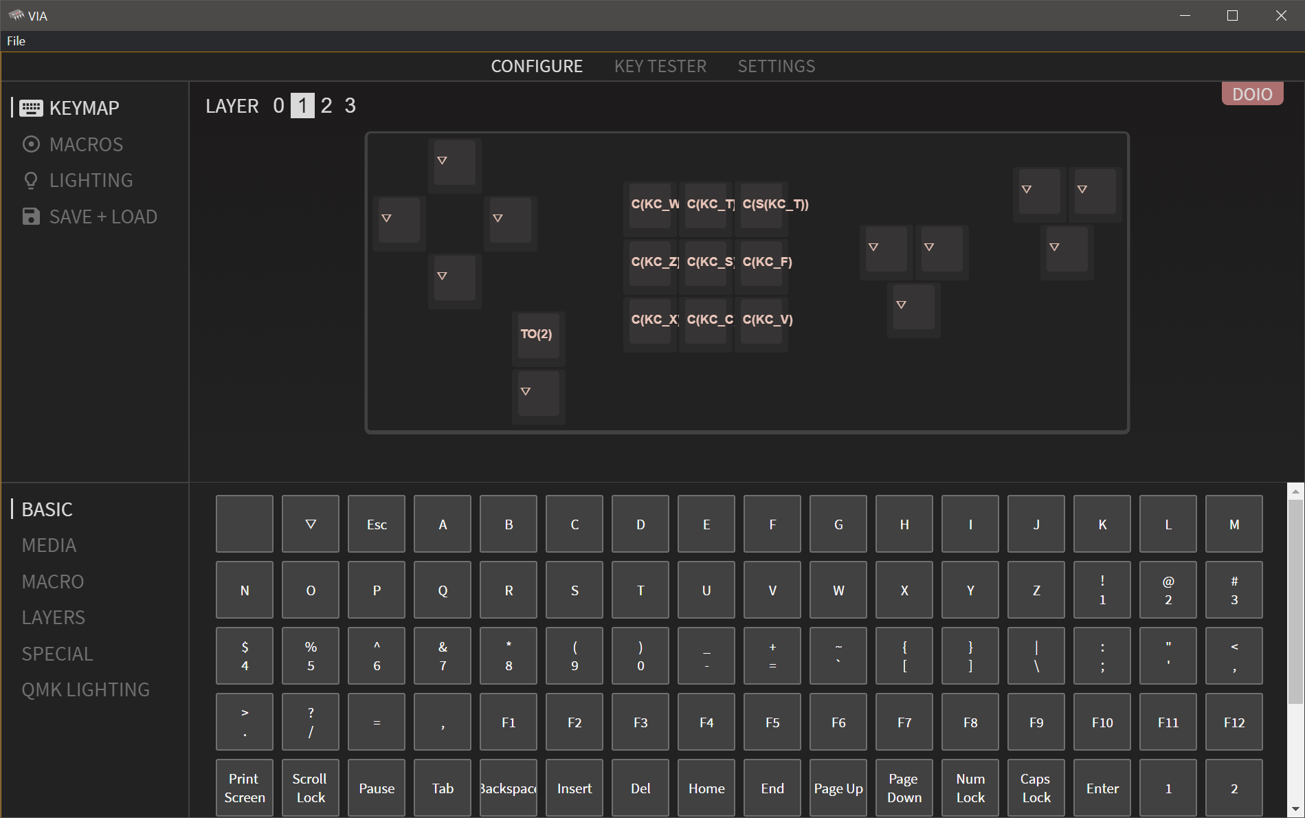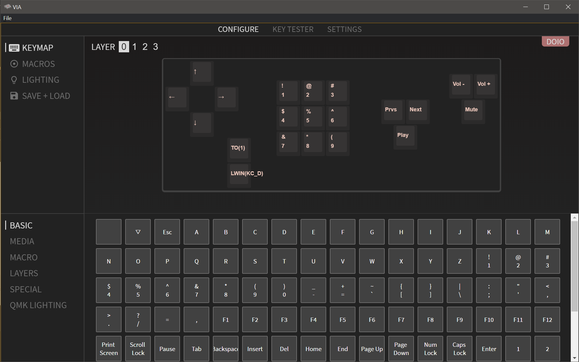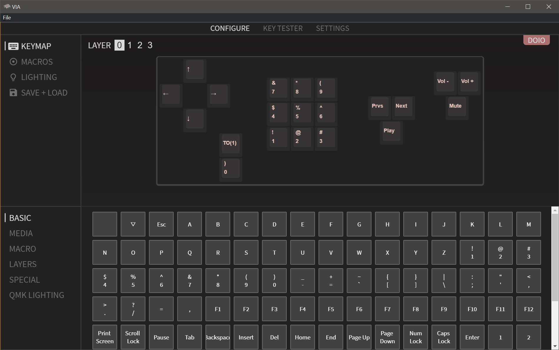 이 키패드에는 총 4가지의 레이어가 있고, 각각의 키를 매핑할 수 있습니다.