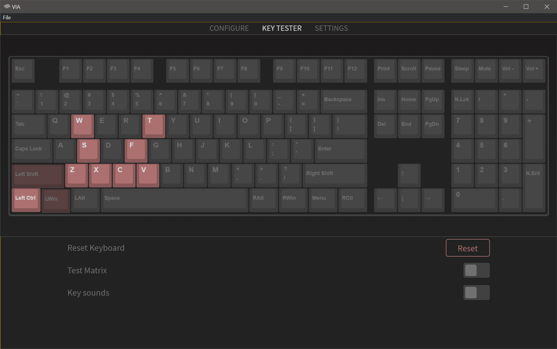 위 중앙 3가지 메뉴에서 KEY TESTER를 클릭하여 키를 테스트해볼 수 있습니다.