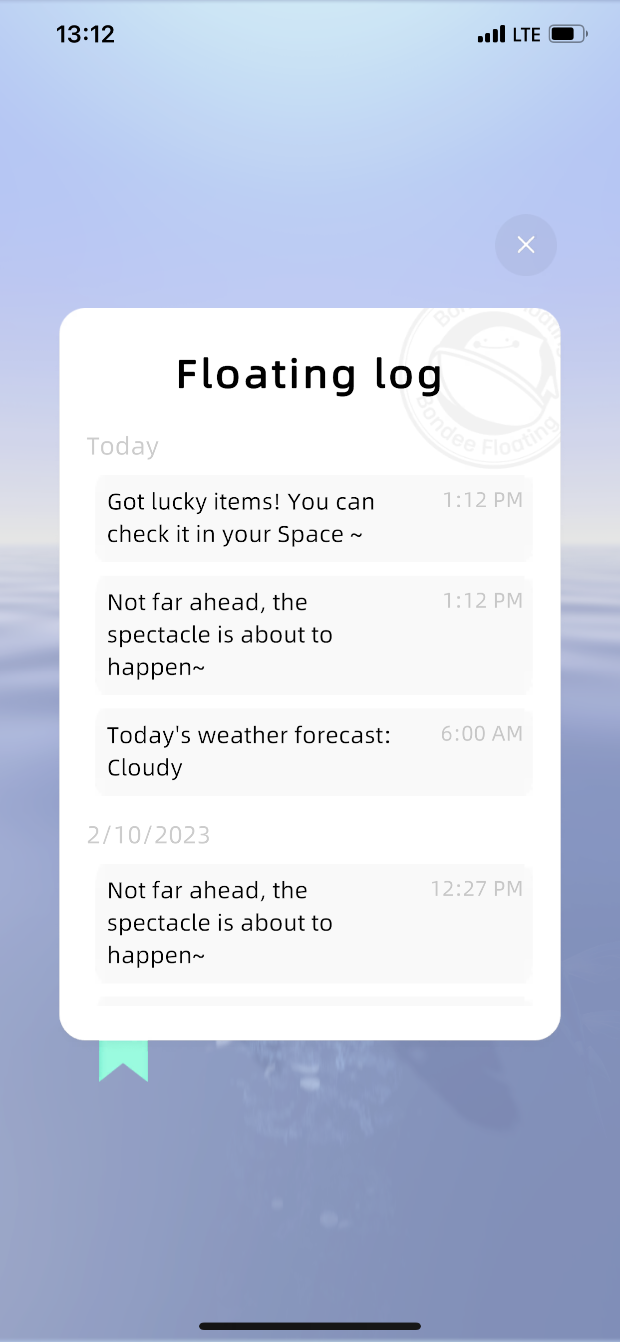 알람 모양을 클릭하면 플로팅 하면서 만난 아이템이나 기타 등등 로그를 볼 수 있습니다.