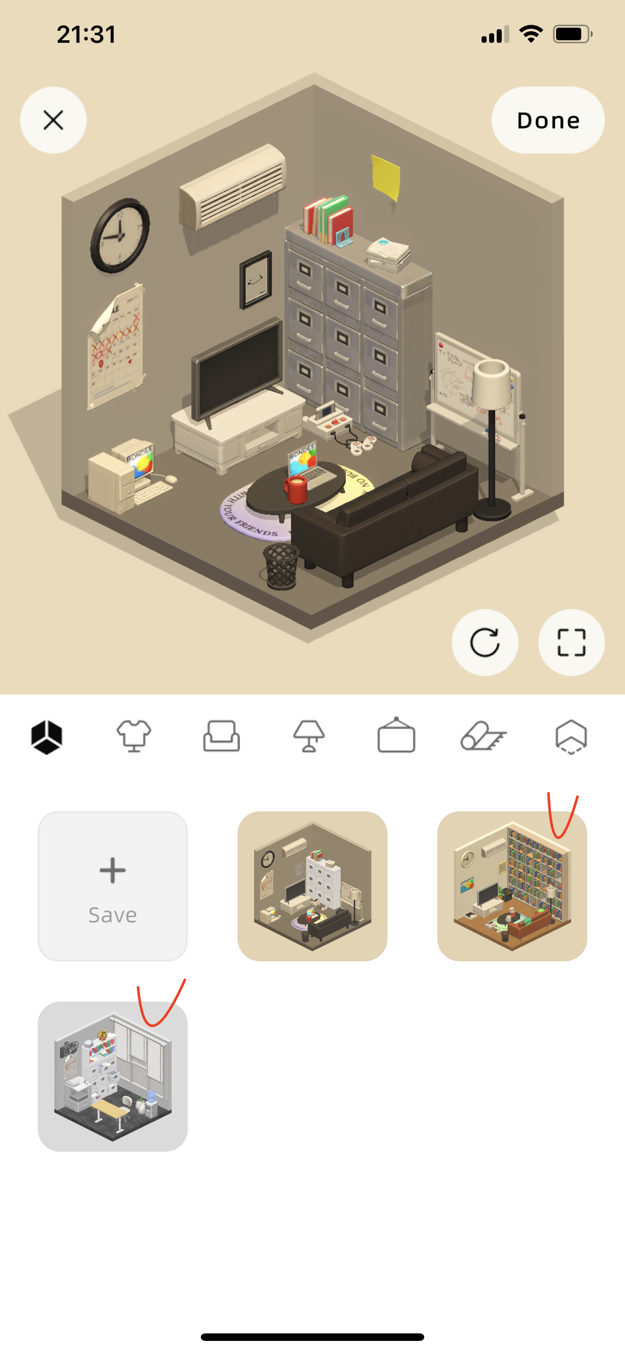 이것도 물론 자기가 꾸민 방을 저장도 할 수 있습니다.