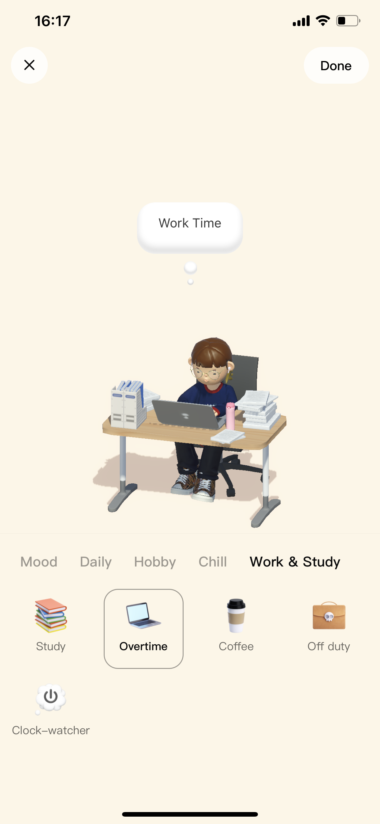 내 아바타의 +Status 버튼을 누르면 오른쪽 두 화면처럼 자신의 상태를 정할 수 있고요,