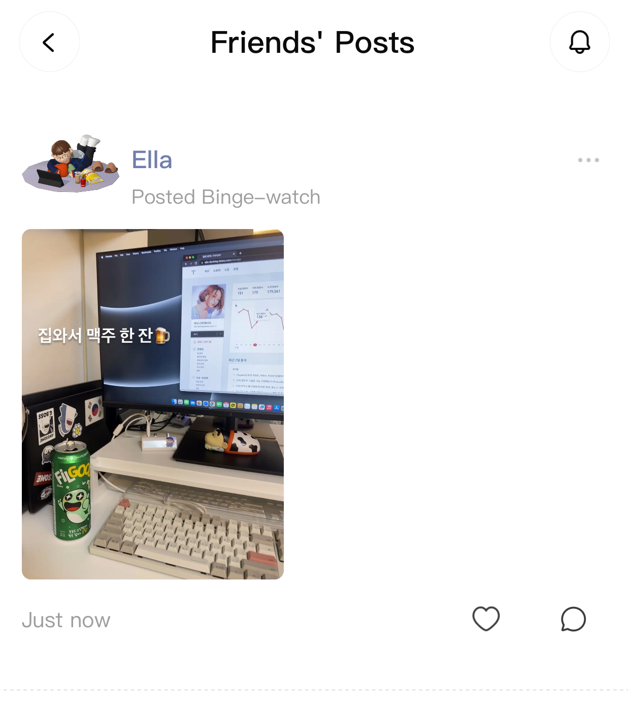 사진 찍고 글도 써서 포스팅하는 기능도 있고, 친구들의 포스팅을 모아보는 기능도 있습니다.