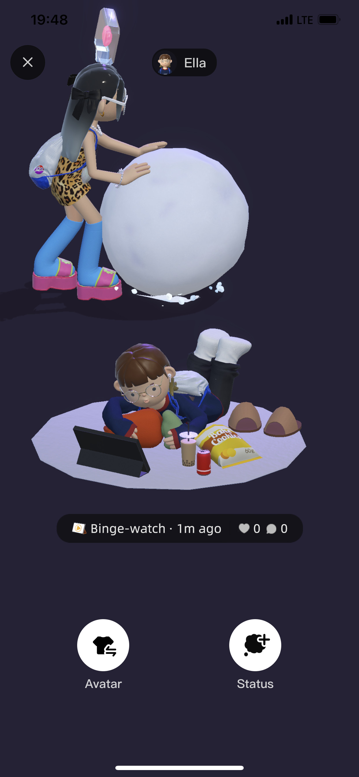 친구한테 친구 신청을 했더니 친구가 바로 채팅이 왔는데, 아바타들이 춤추고 놀고 있는 거 아니겠습니까..?ㅋㅋㅋ