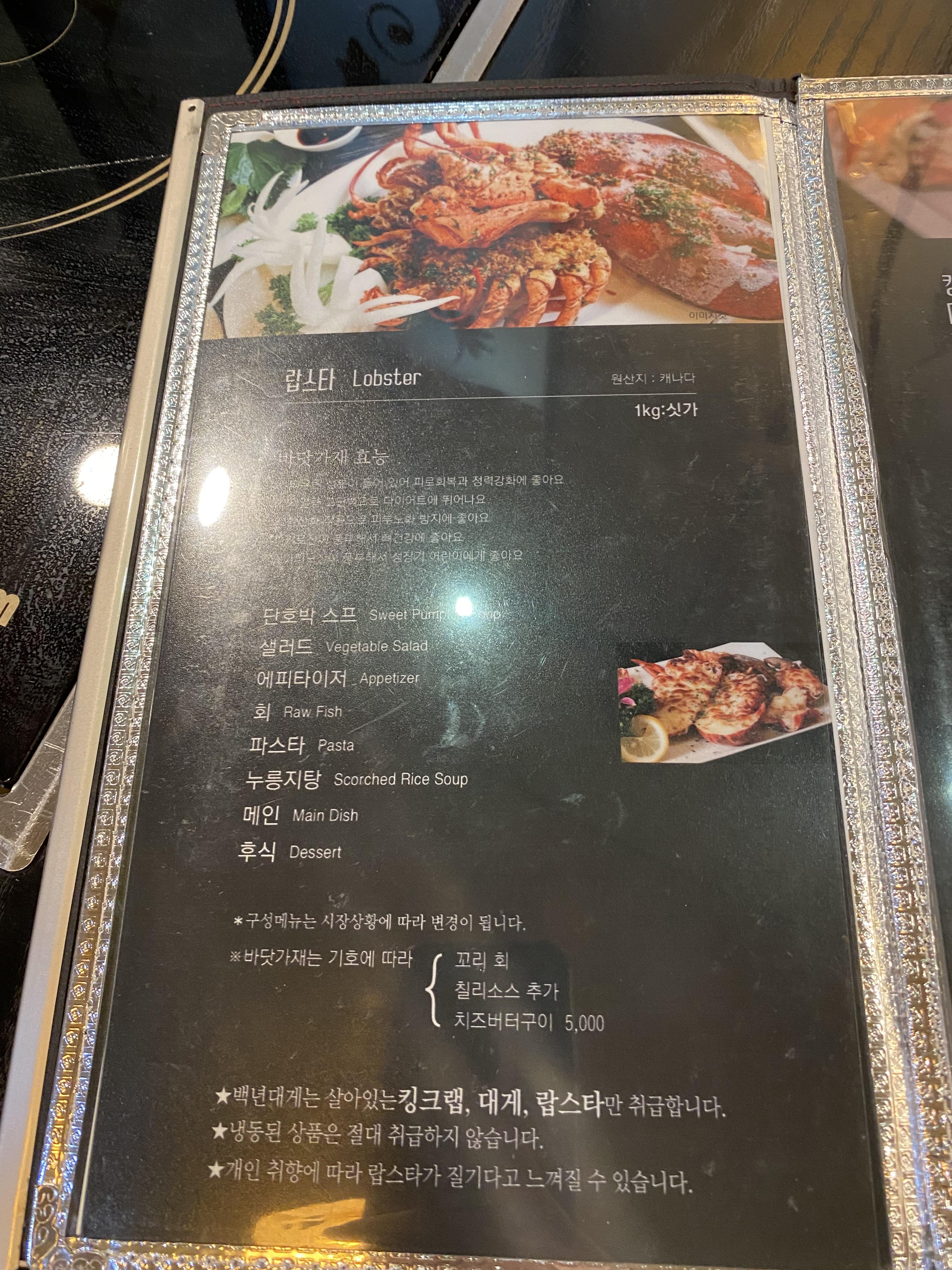 (계절이나 상황에 따라 메뉴가 바뀔 수도 있다고 명시함)