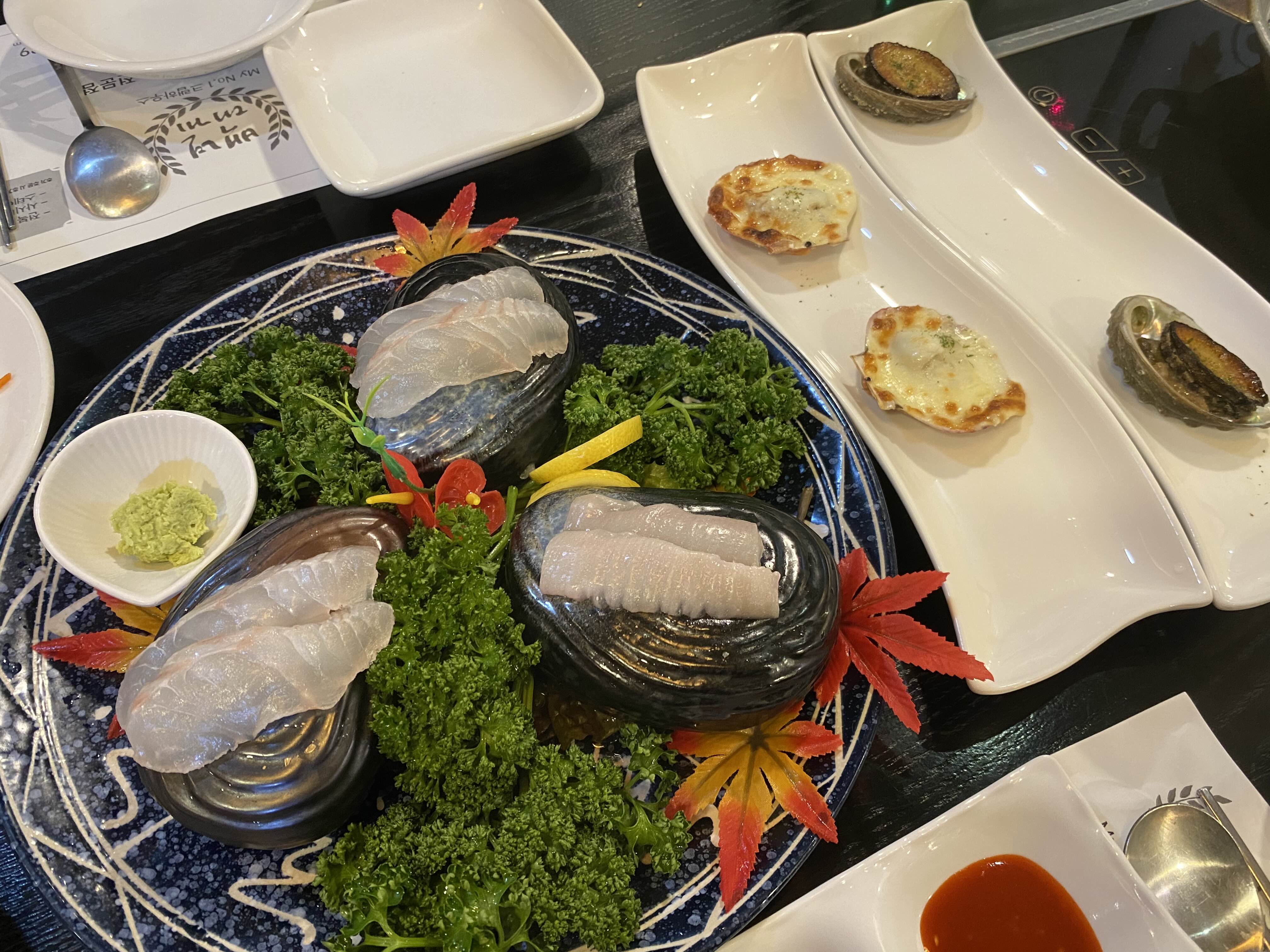 이거 회 이렇게 에피타이저로 나오는 데서 회 이렇게 맛있는 거 오랜만.