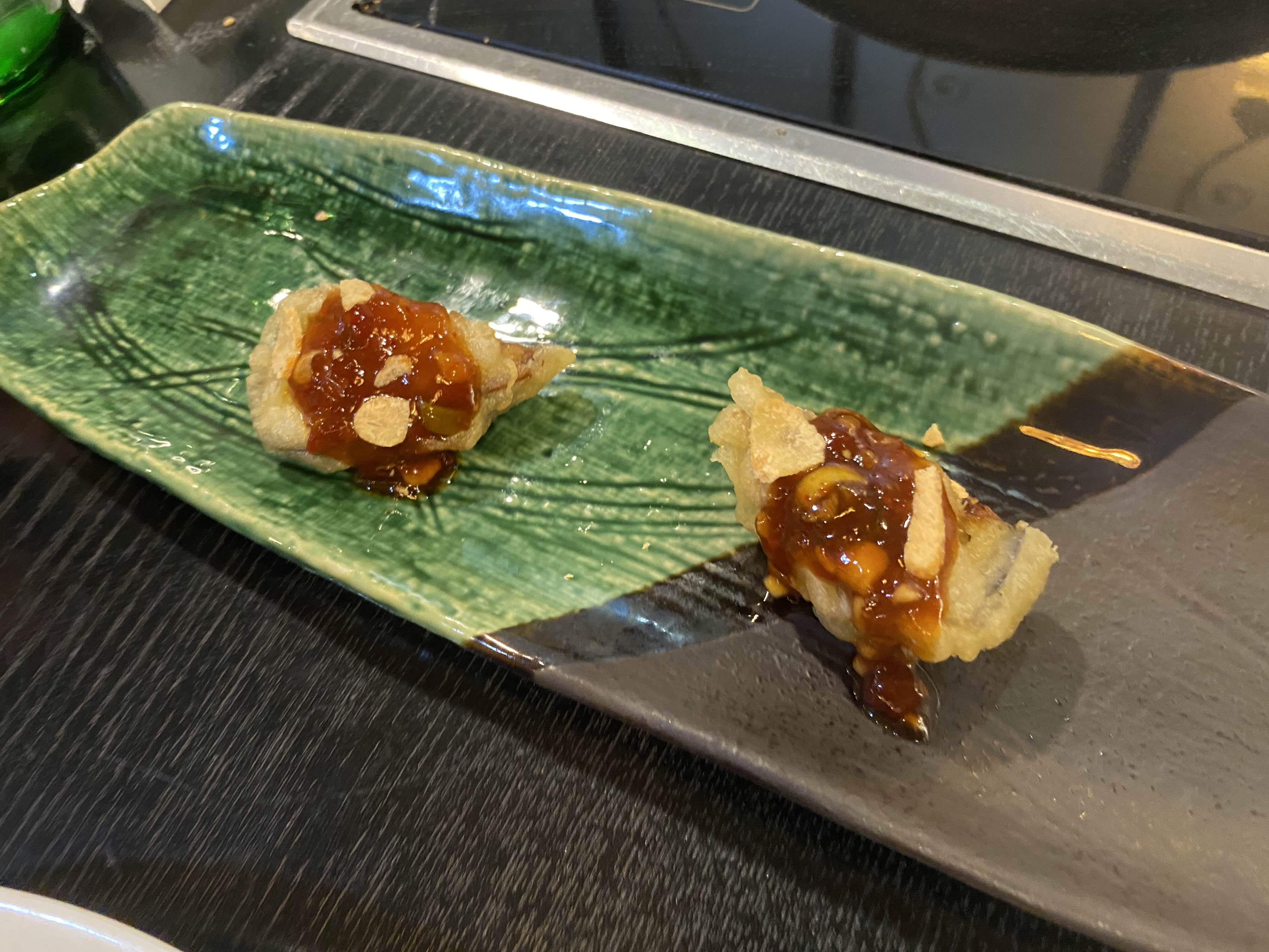 가지튀김도 같이 나왔는데, 가지튀김 안에는 고기가 실하게 들어가 있더라구요.