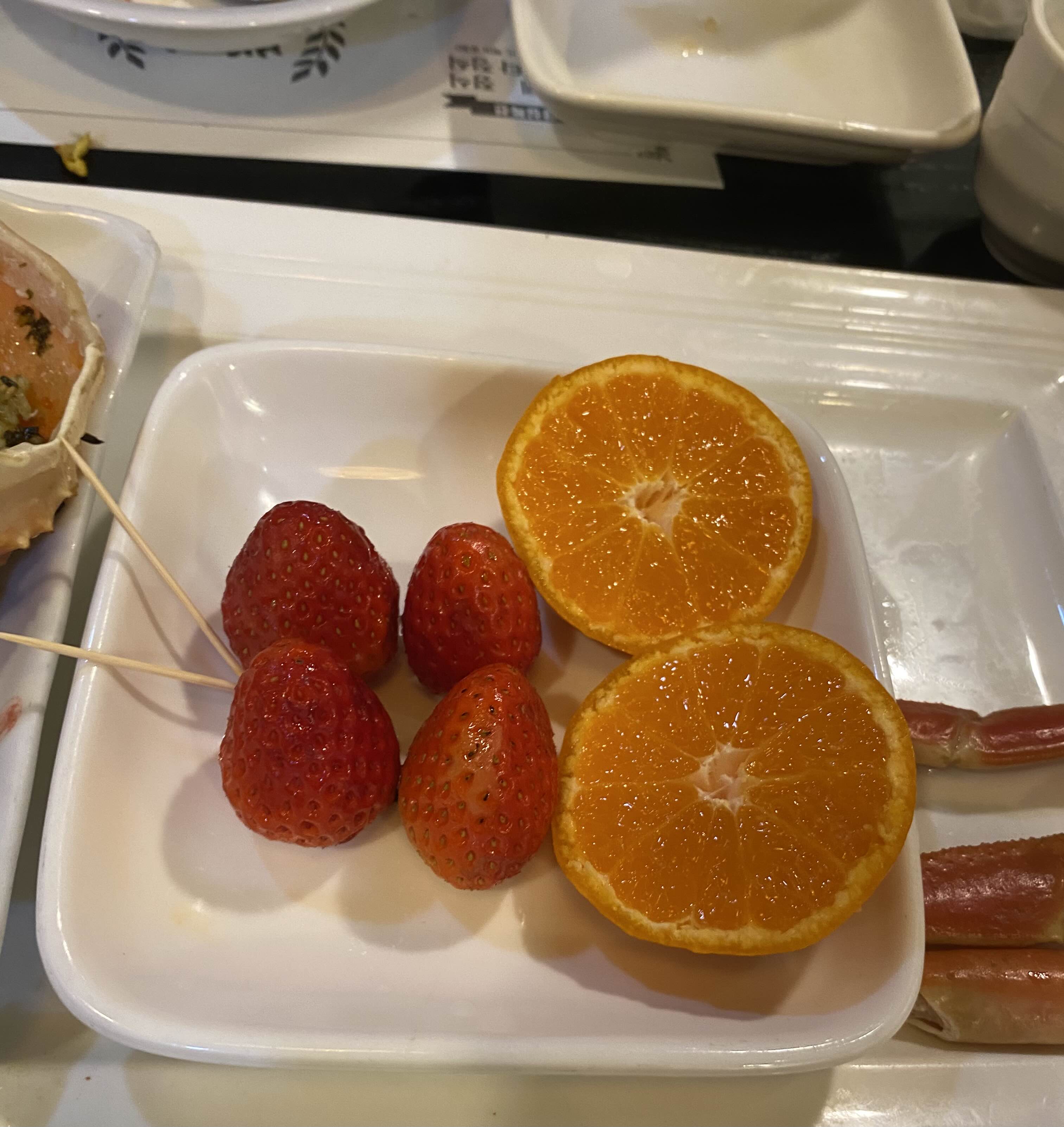 그리고 다 먹고 후식으로는 딸기랑 귤 주셨습니다.