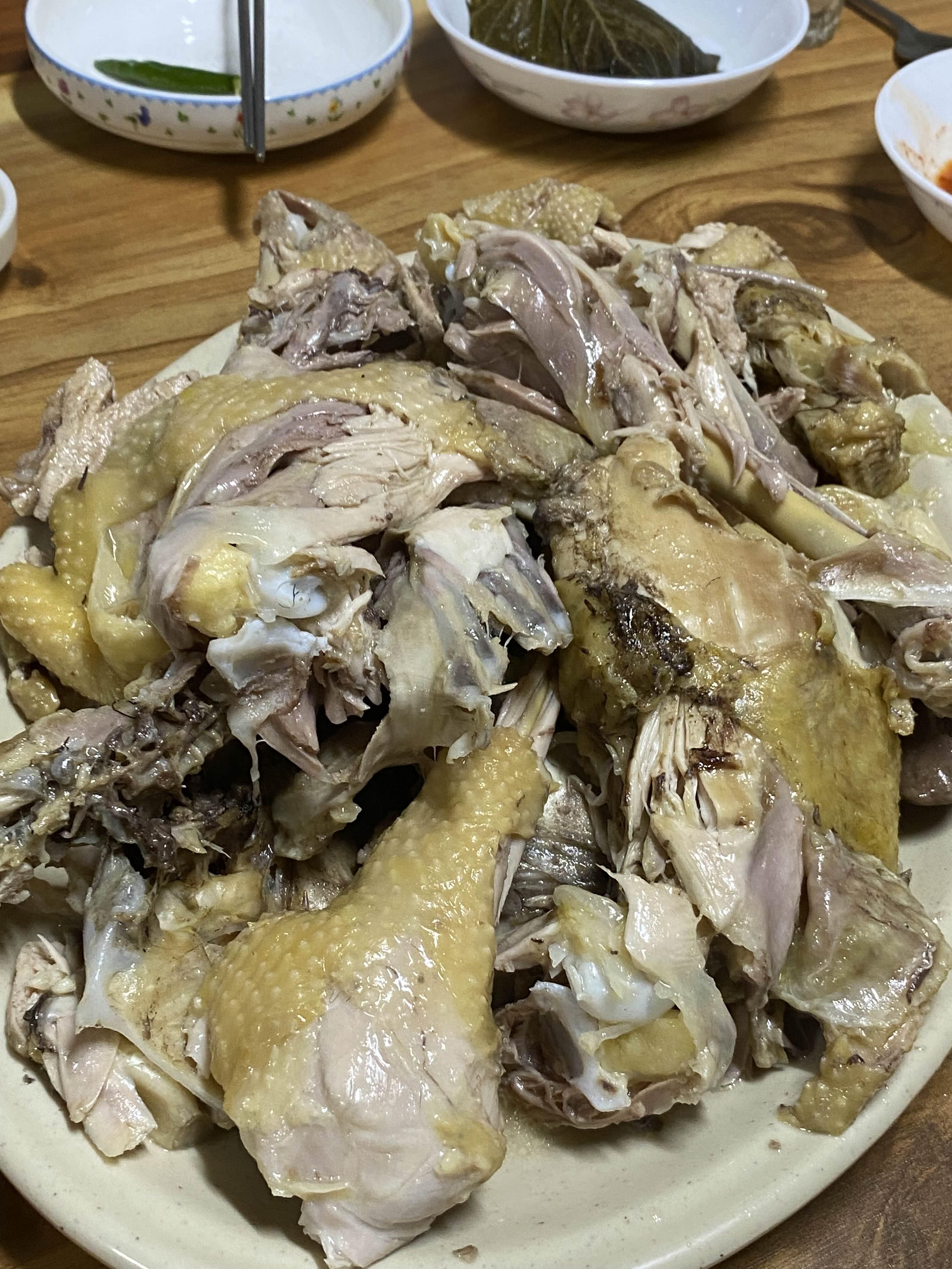 닭다리 뼈가 제 팔뚝 길이랑 비슷했어요. 진심.