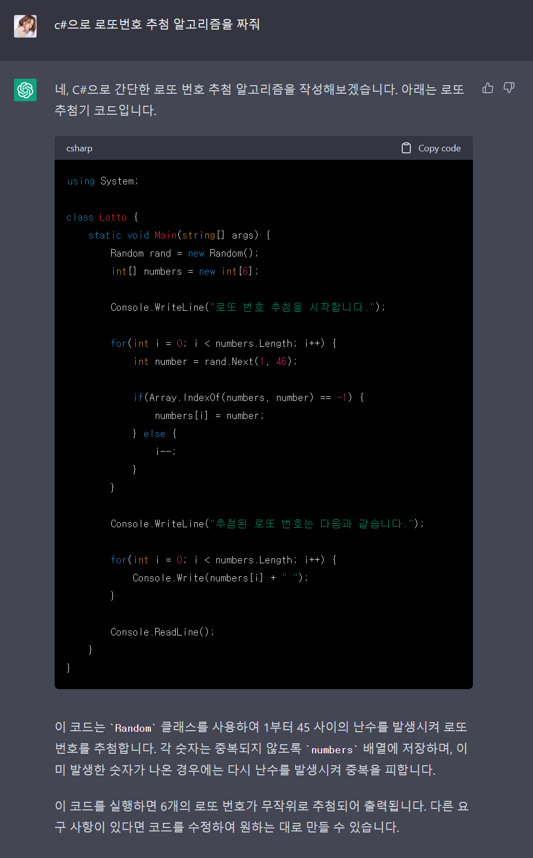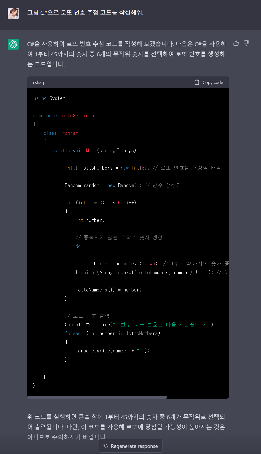 저도 포스팅하려고 ChatGPT에게 로또 번호를 물어봤습니다.