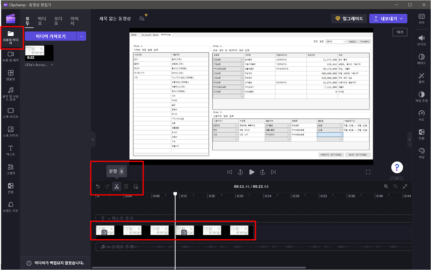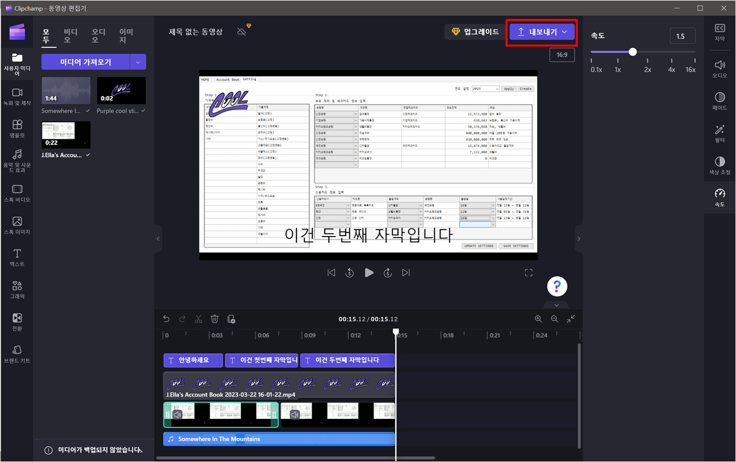 영상 편집이 끝나면 영상을 내보내기 할 수 있습니다.