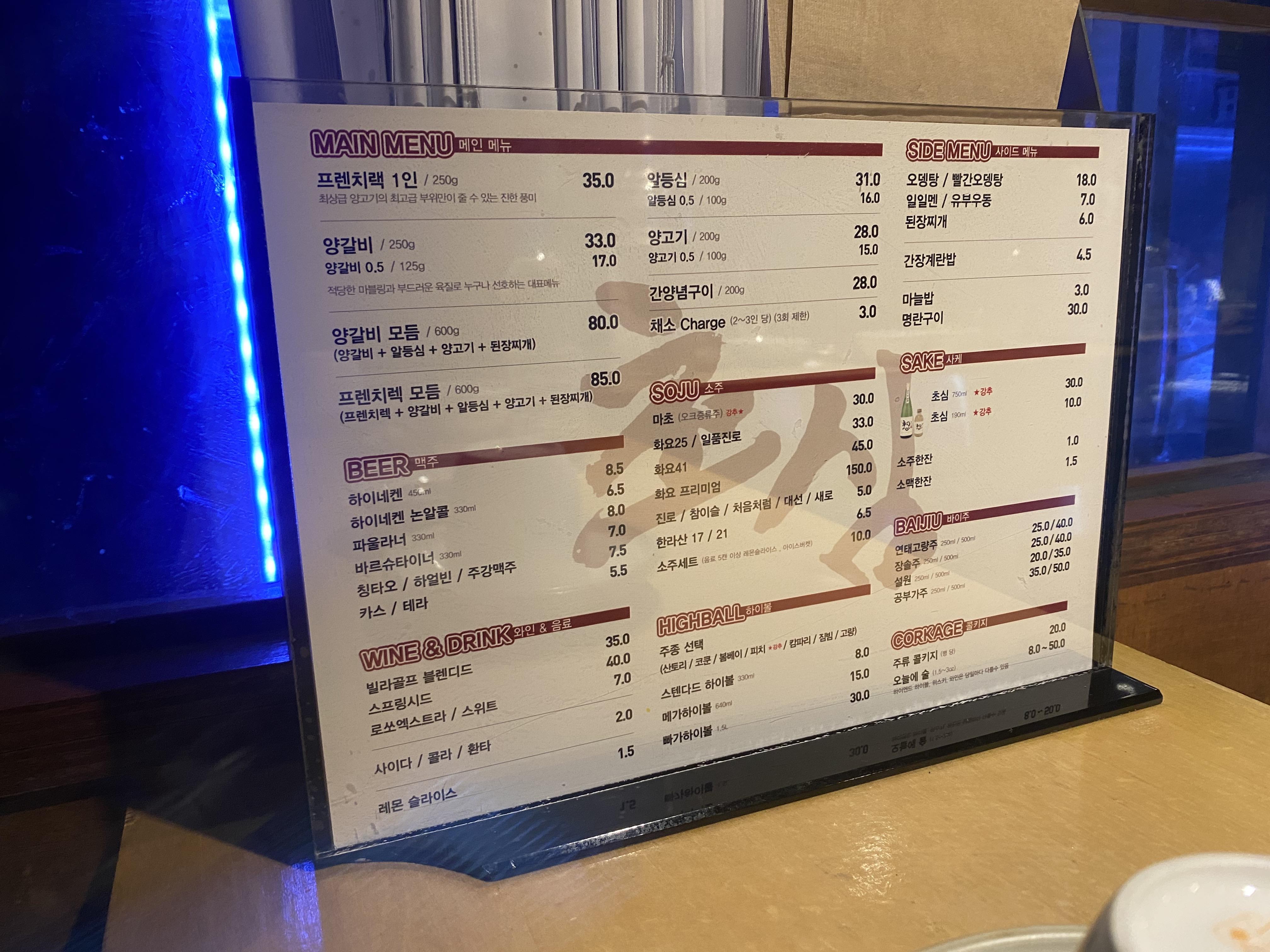 메뉴는 이렇게 있고, 저희는 프렌치렉 모둠으로 주문했습니다.