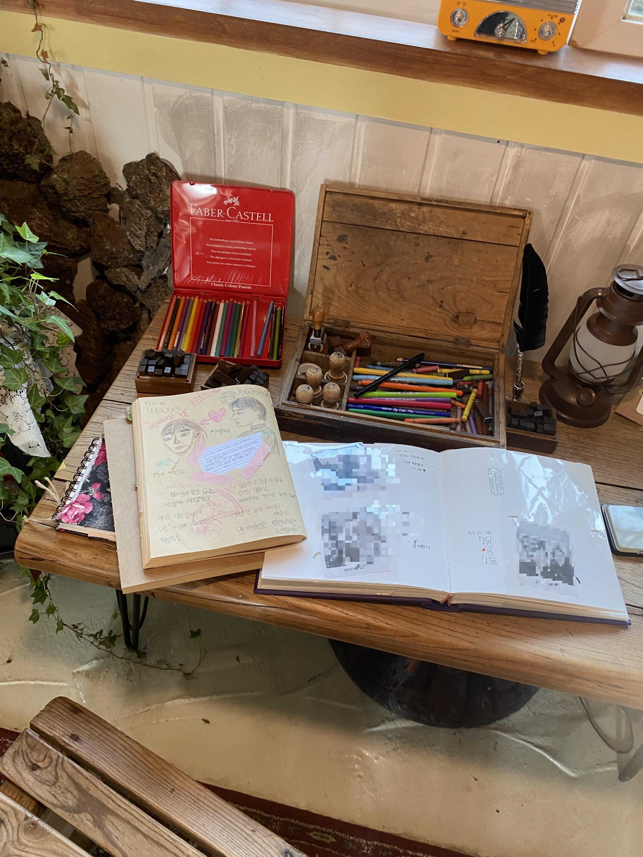 색연필도 있고, 스탬프도 있고 해서 이렇게 꾸밀 수 있습니다.