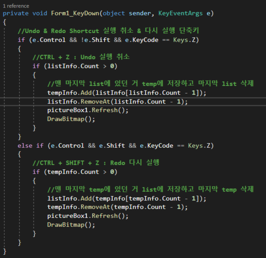 2020.10.16 - [IT/C#] - [C#] 윈도우 그림판 기능 구현해보기 (PictureBox 그리기 기능, Undo/Redo 기능, 단축키 사용 방법) [C#] 윈도우 그림판 기능 구현해보기 (PictureBox 그리기 기능, Undo/Redo 기능, 단축키 사용
