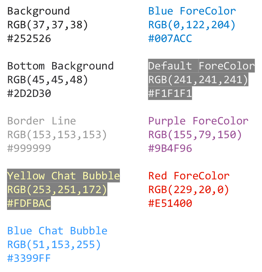 전체적인 컬러는 Visual Studio Color Reference를 참고하여 만들었습니다.
