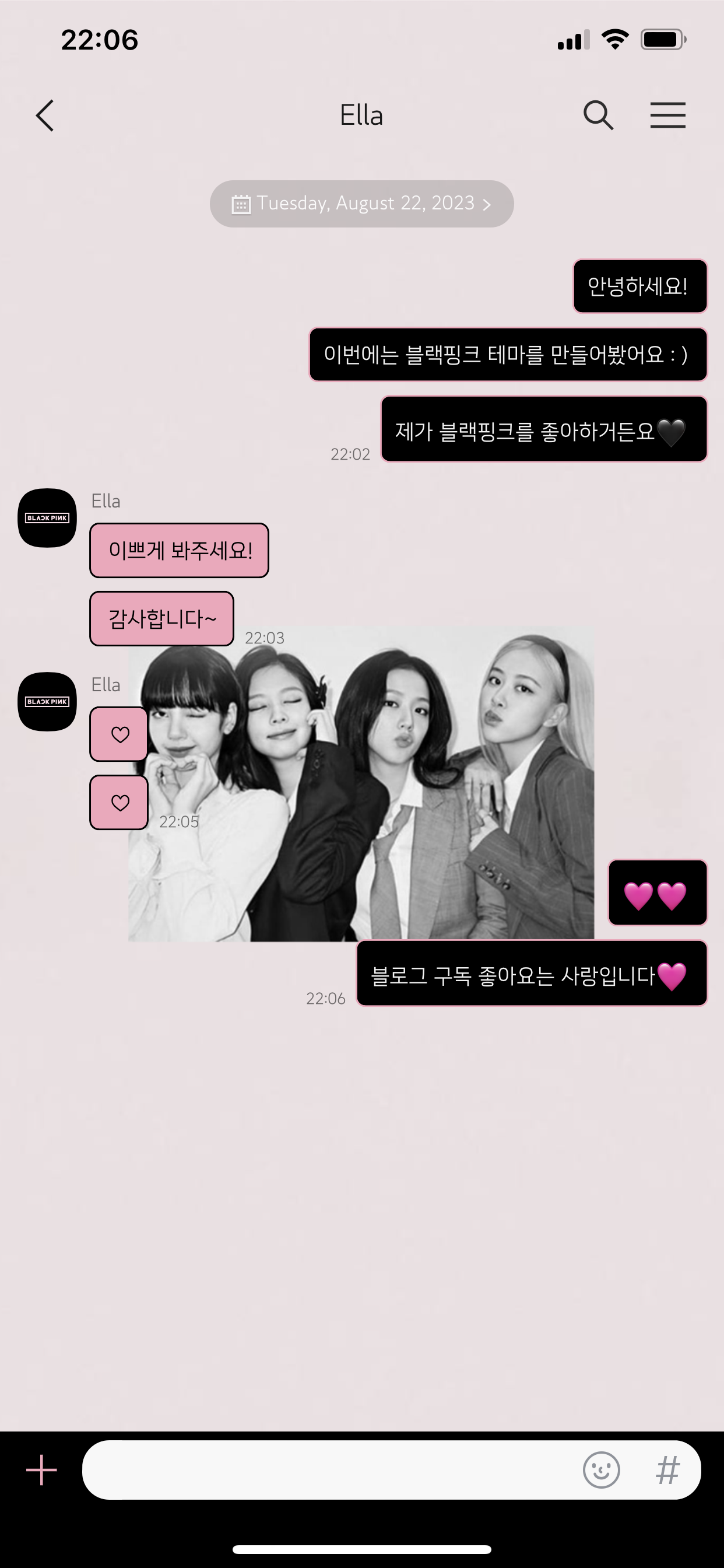 채팅창도 블랙과 핑크로 주고받게 만들었는데