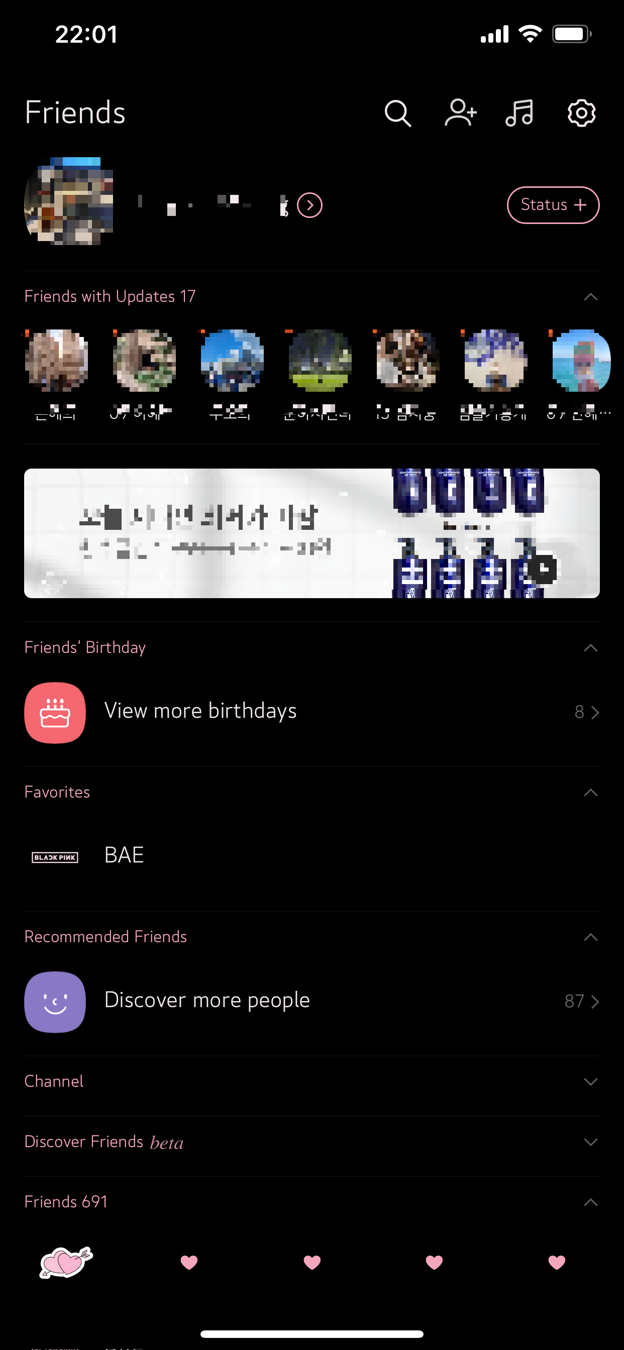 프로필이 없는 친구들은 블랙핑크 로고로 변경됩니다.
