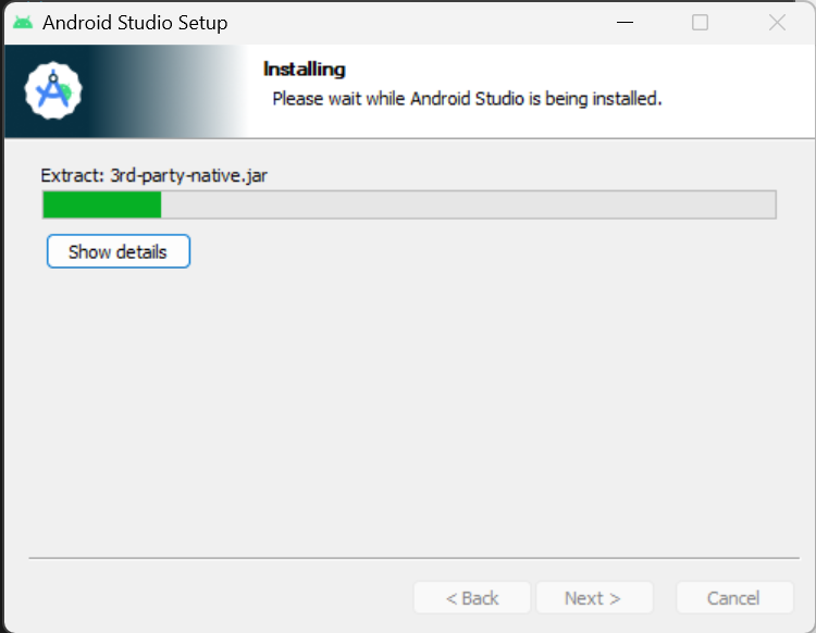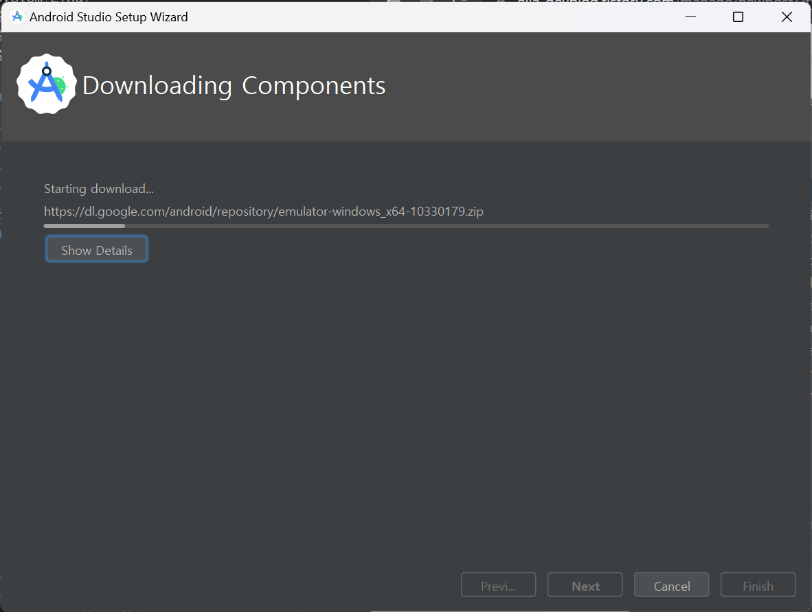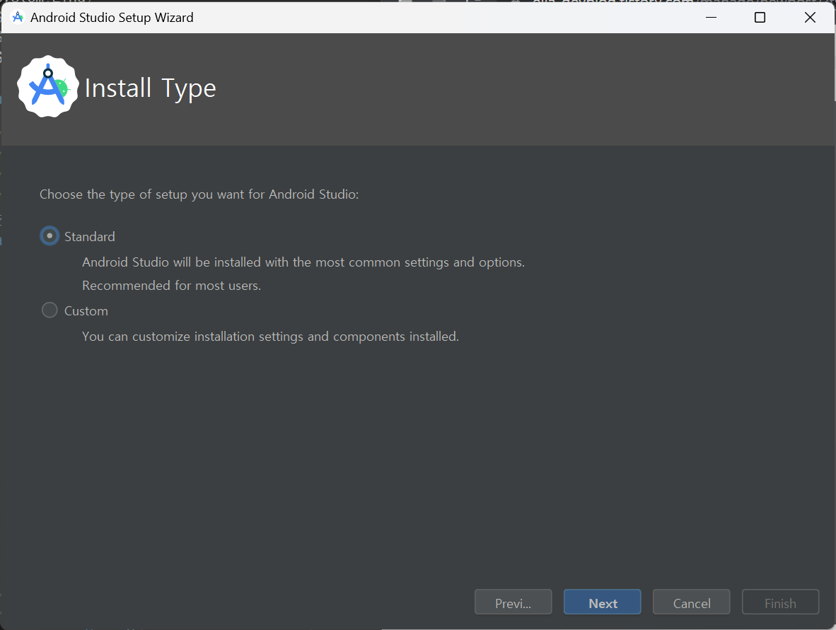이렇게 되면 설치는 끝났지만, 안드로이드 스튜디오를 실행하여 다른 환경설정이 필요합니다.