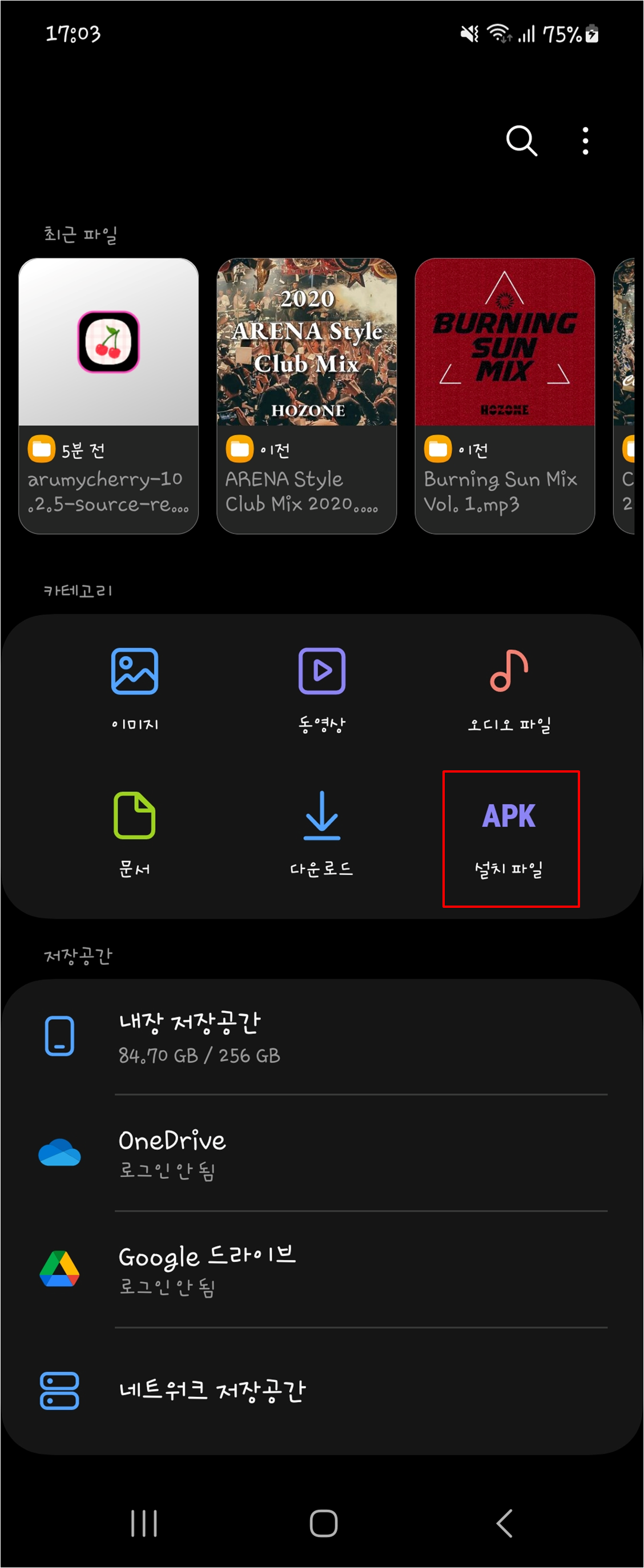 내 파일에 들어가면 APK 폴더가 따로 있습니다.