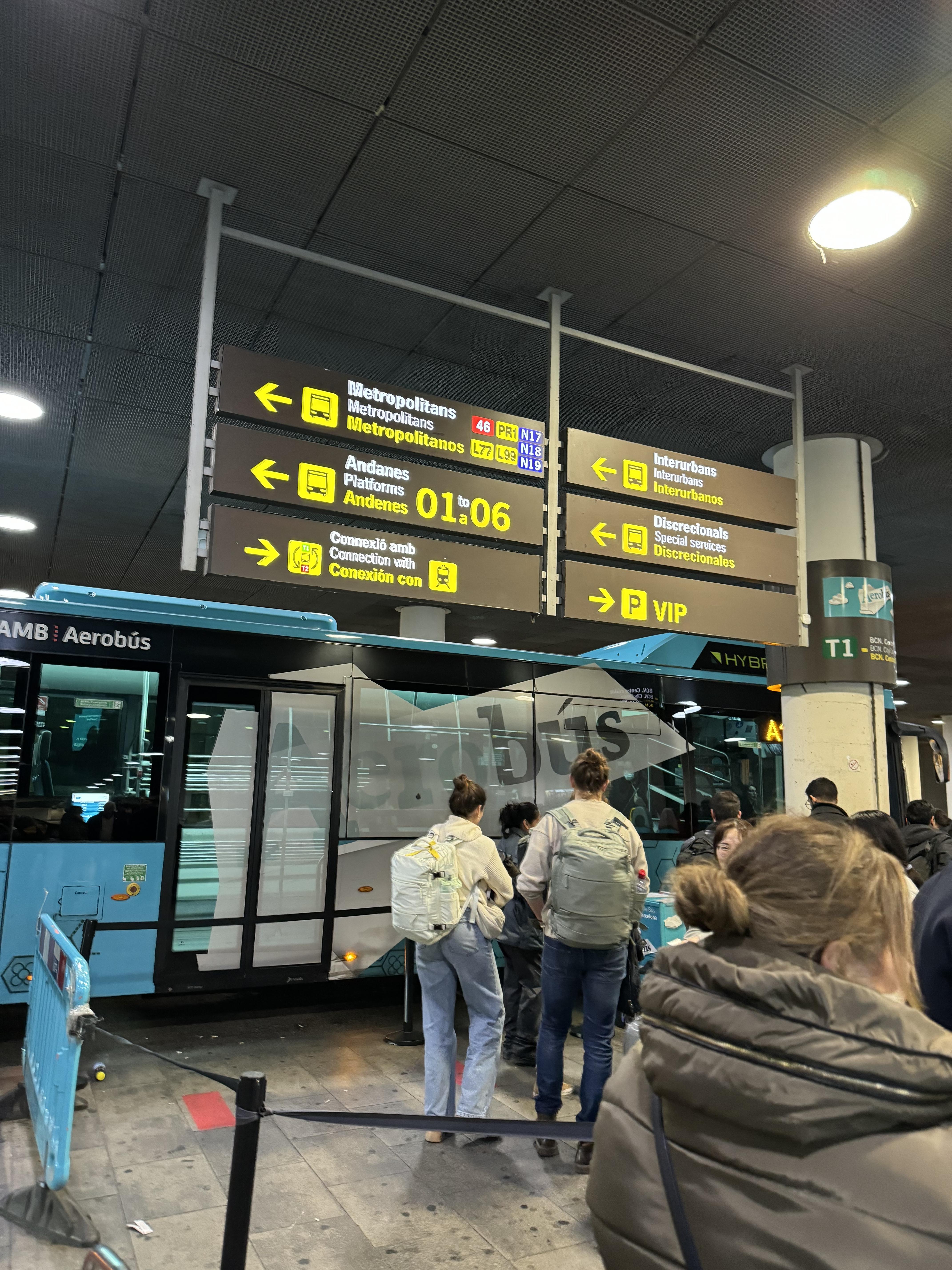 바르셀로나 시내로 가는 Aerobus 공항버스를 타기 위해 입국장에서 버스 표시를 보고 한층 아래로 내려와서 표지판 보고 따라갔습니다.