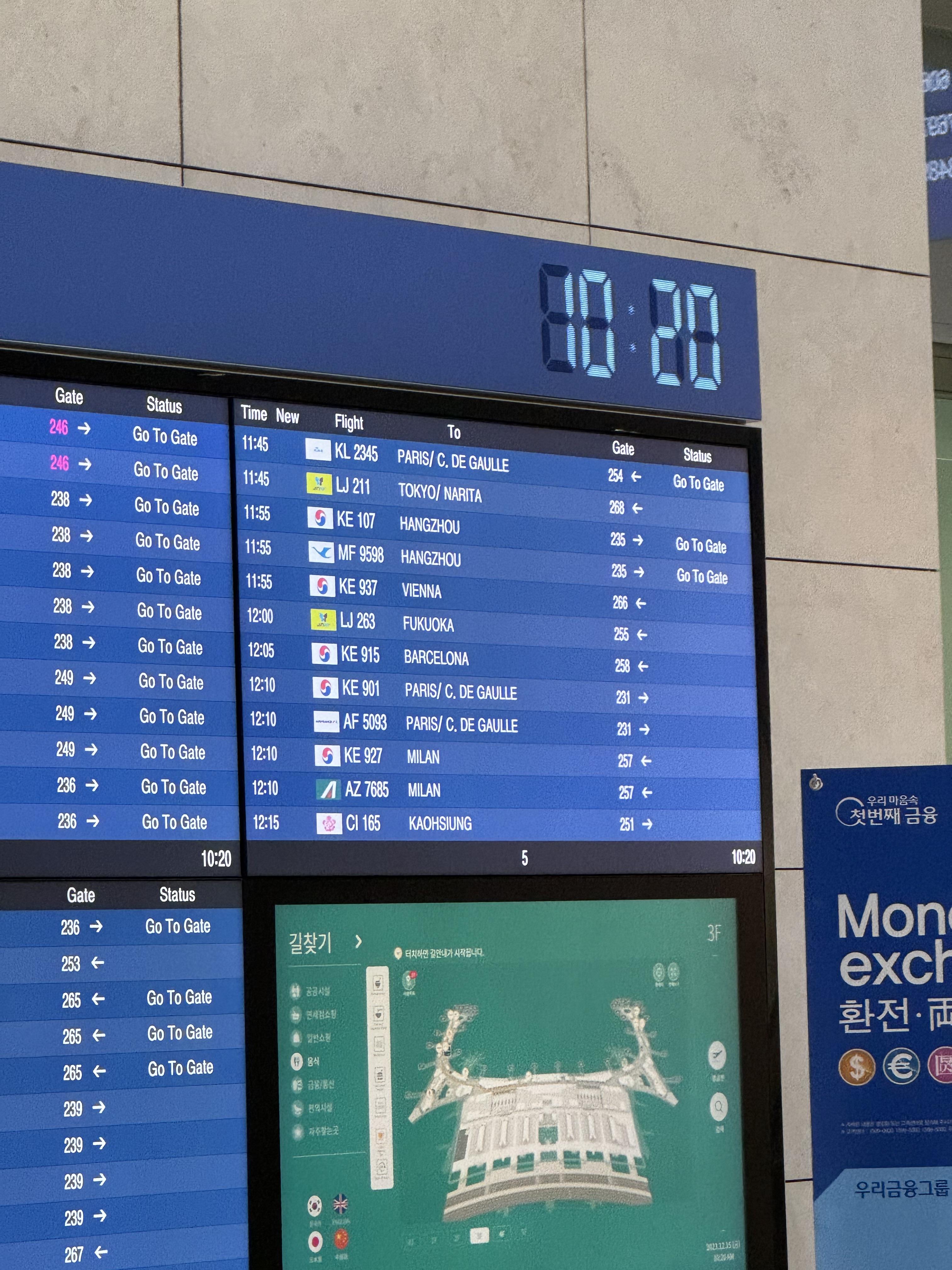 짐 맡기고 대한항공 짐 탑재됐다는 거 확인받고 출국장 들어갔습니다.