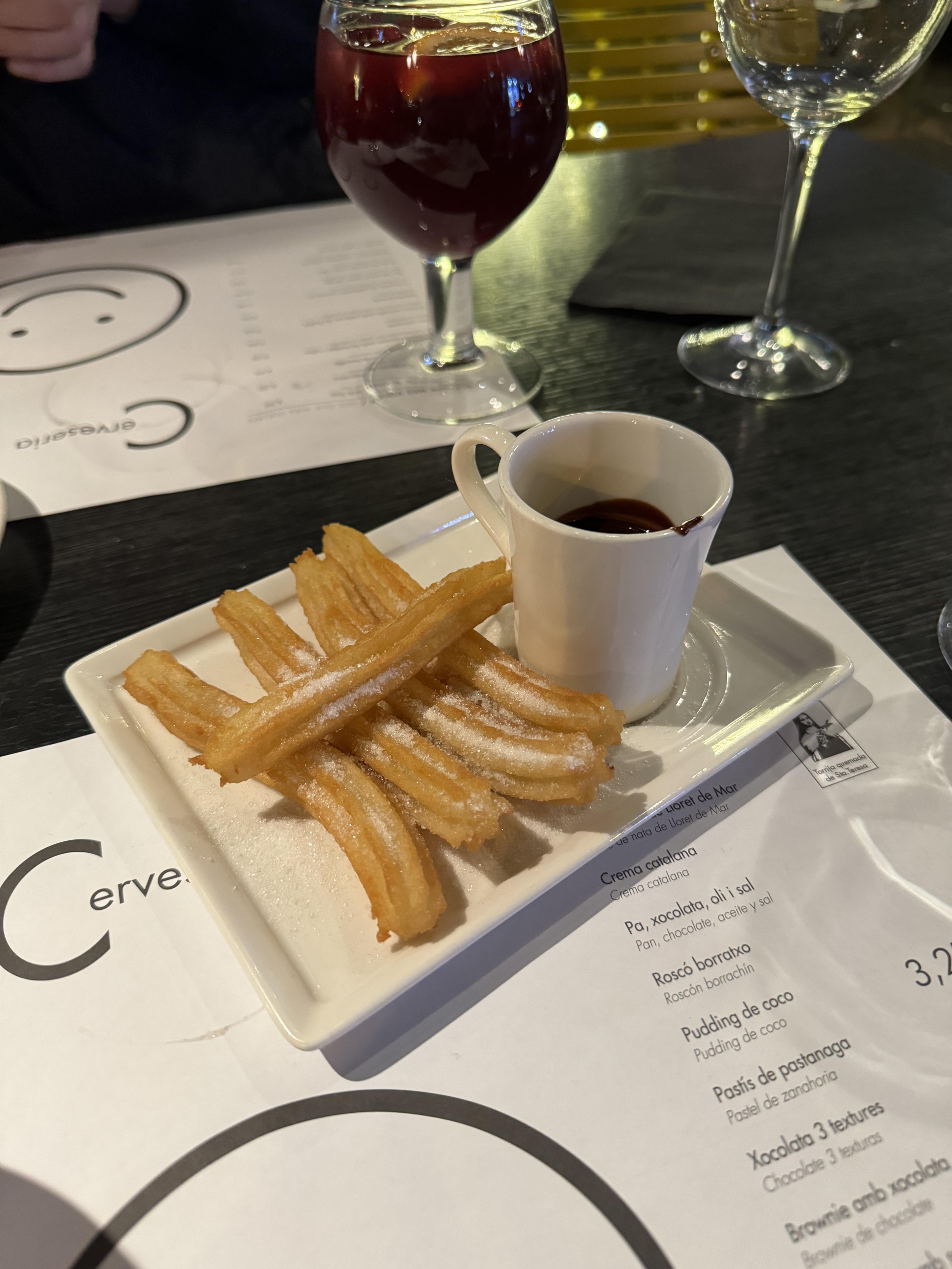 그냥 일반 반죽 추로스인데 시나몬 설탕도 아니고 그냥 설탕이었고 초코 찍어먹는 거였는데,