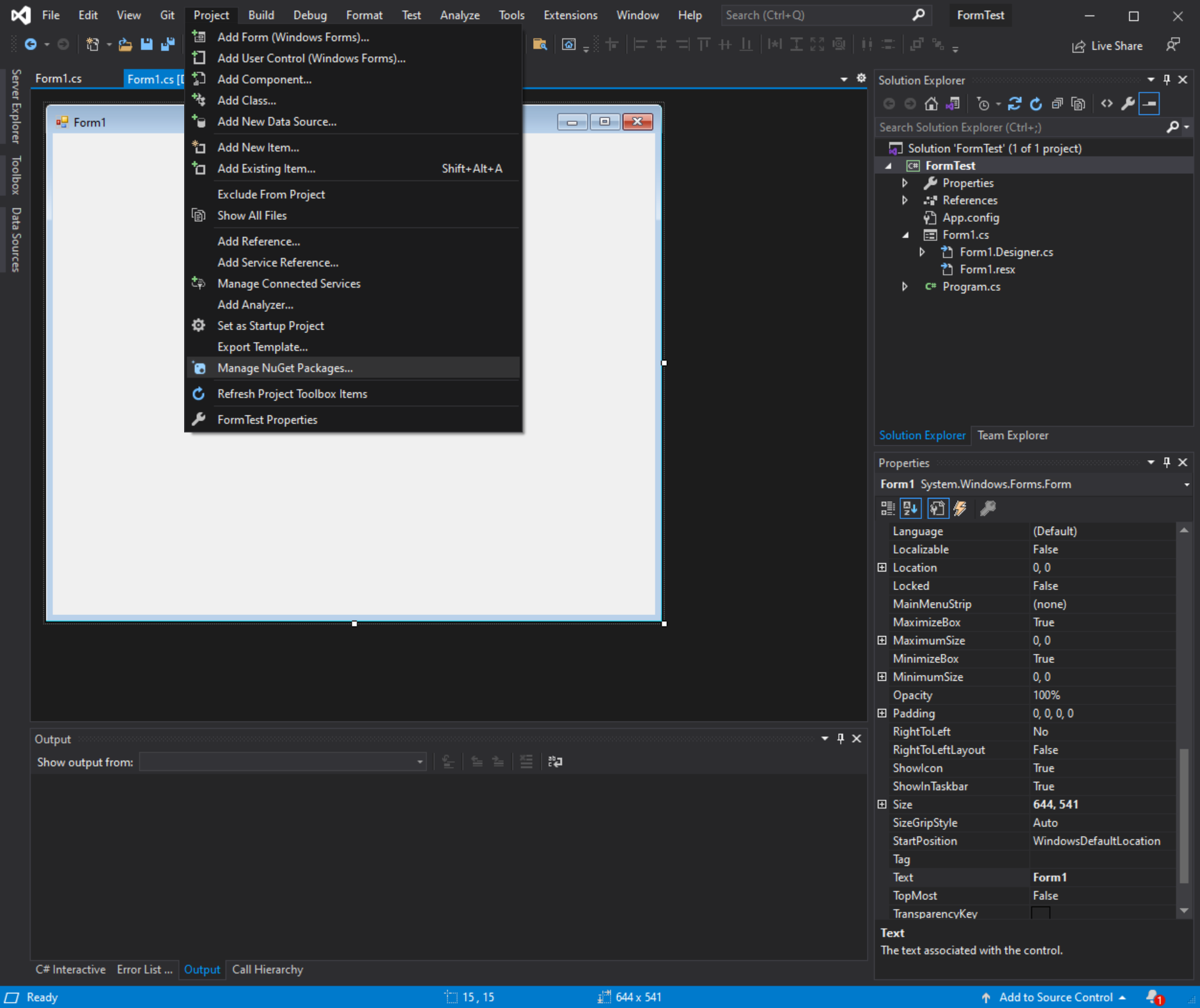 Project > Manage NuGet Packages... 클릭