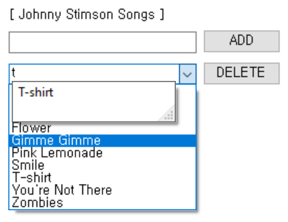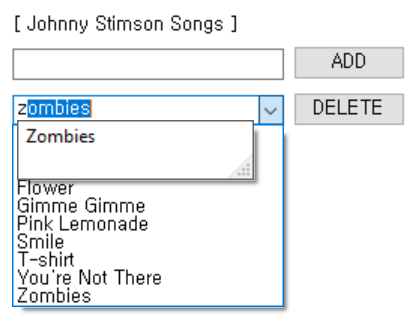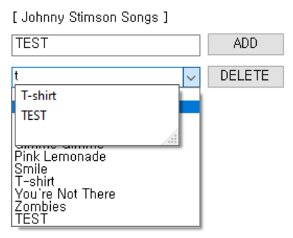 제가 좋아하는 Johnny Stimson😍의 노래 리스트를 먼저 ComboBox에 추가해 뒀고,