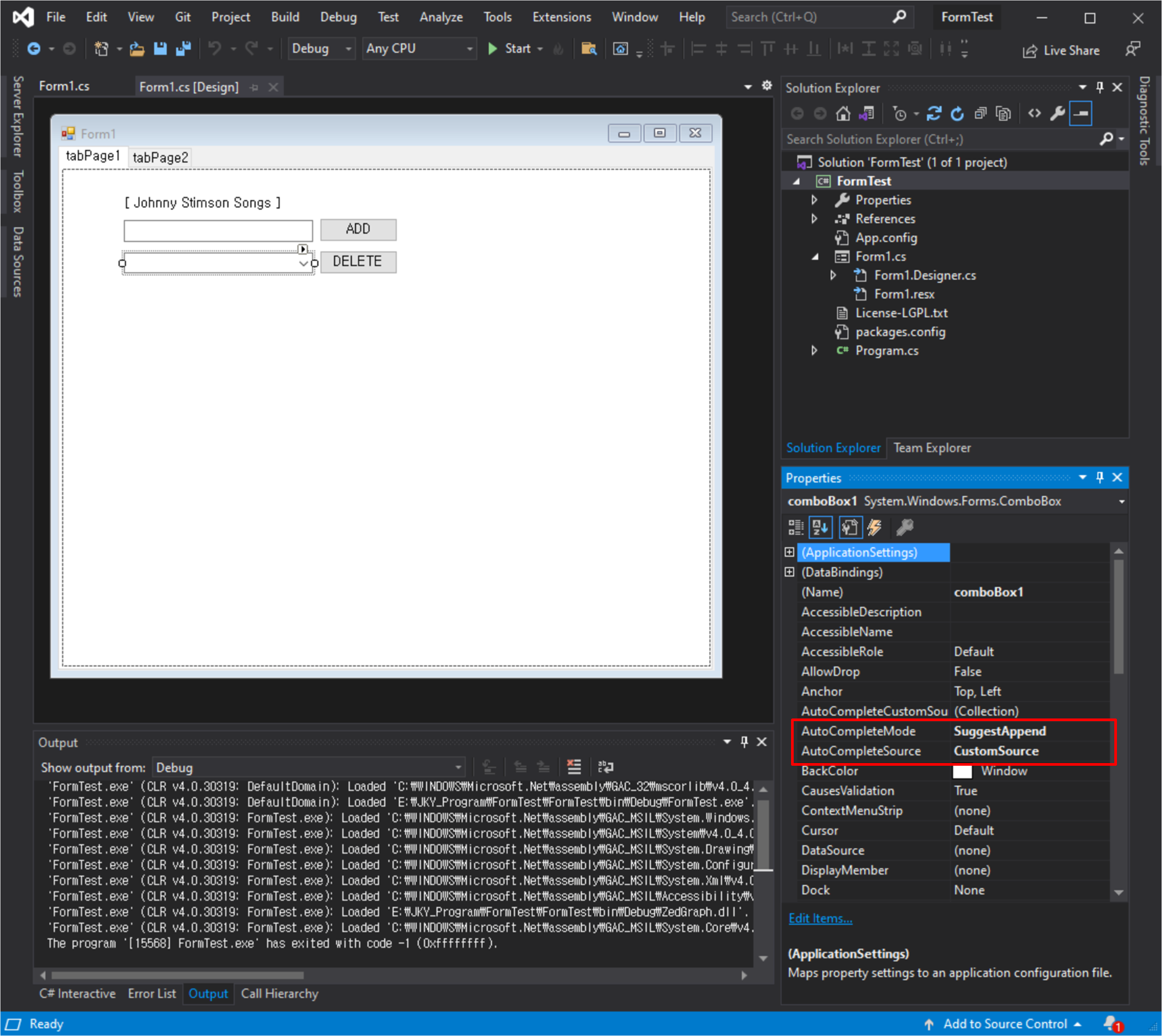 여러 가지 옵션이 있지만 일단은 사용자 지정 CustomSource를 이용하여 자동완성이 되는 코드를 아래에서 확인해 보겠습니다.
