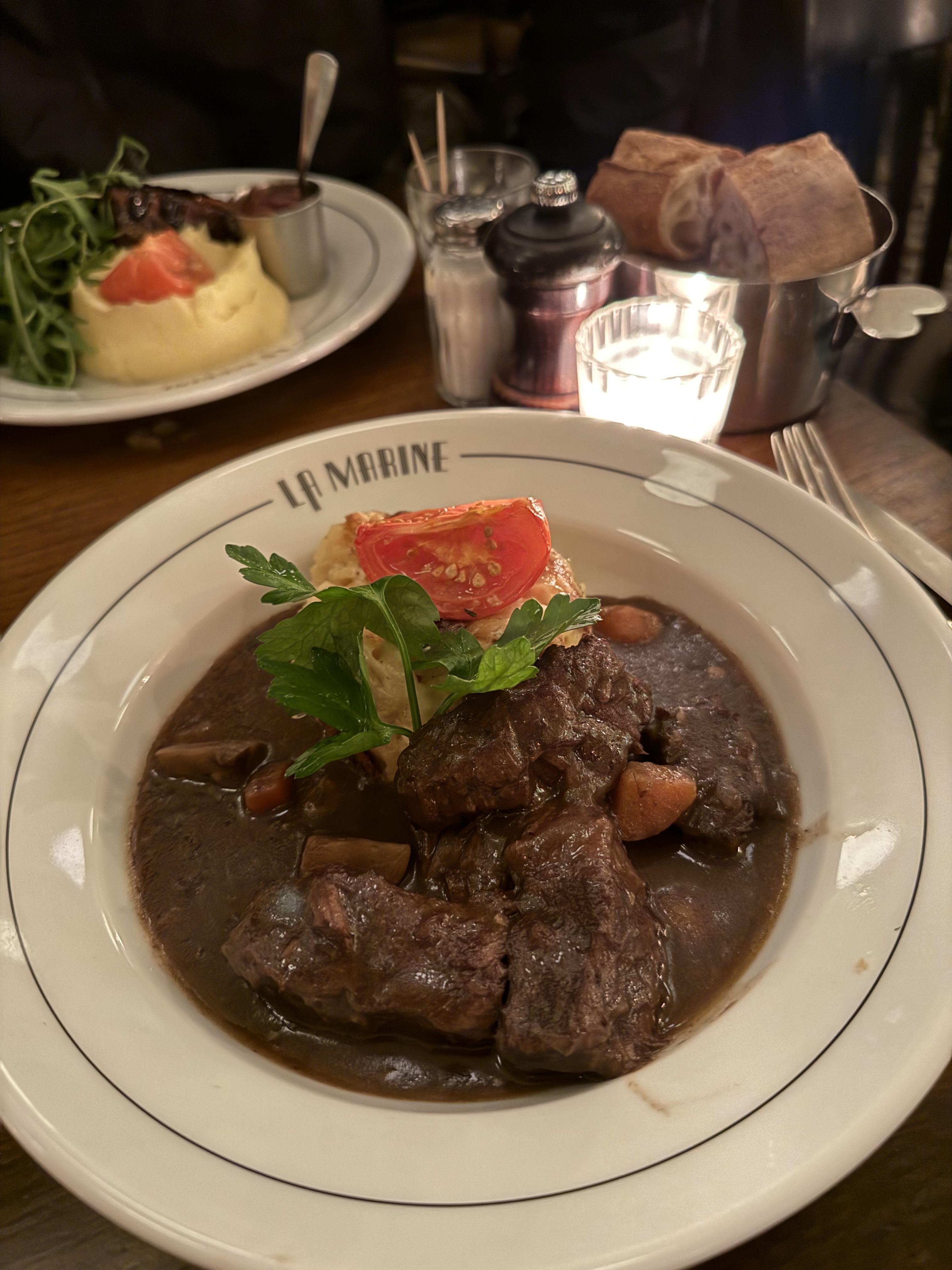 소고기를 포도주에 푹 끓였는데, 살도 부드럽고, 쪼끔 짜긴 했는데, 진짜 맛있었어요!! 엄청!! ㅎㅎ