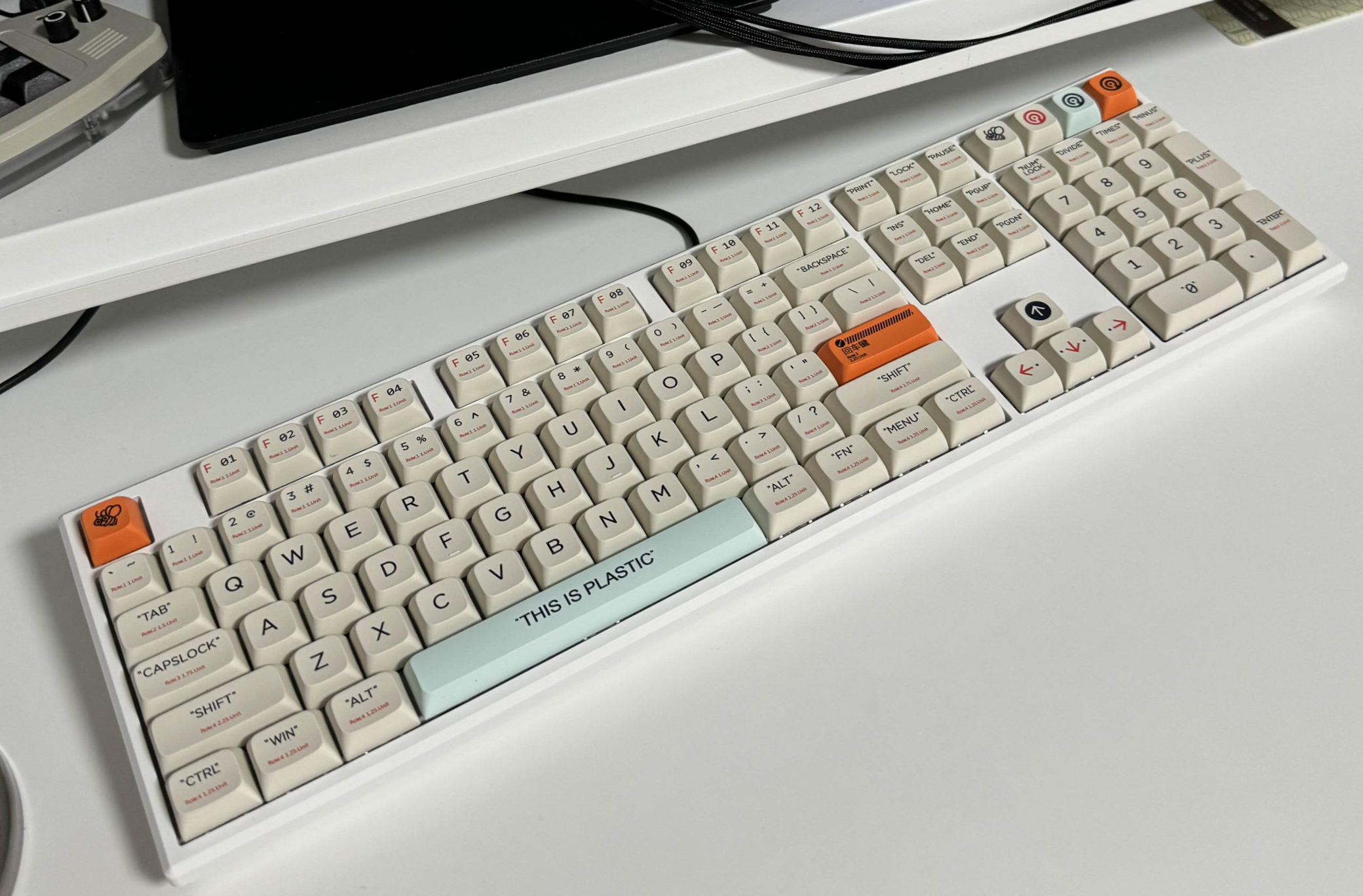 꽤 스페어 키캡이 많아서 우측 번호키 쪽의 키캡을 뭘 끼울까 엄청 고민했어요.