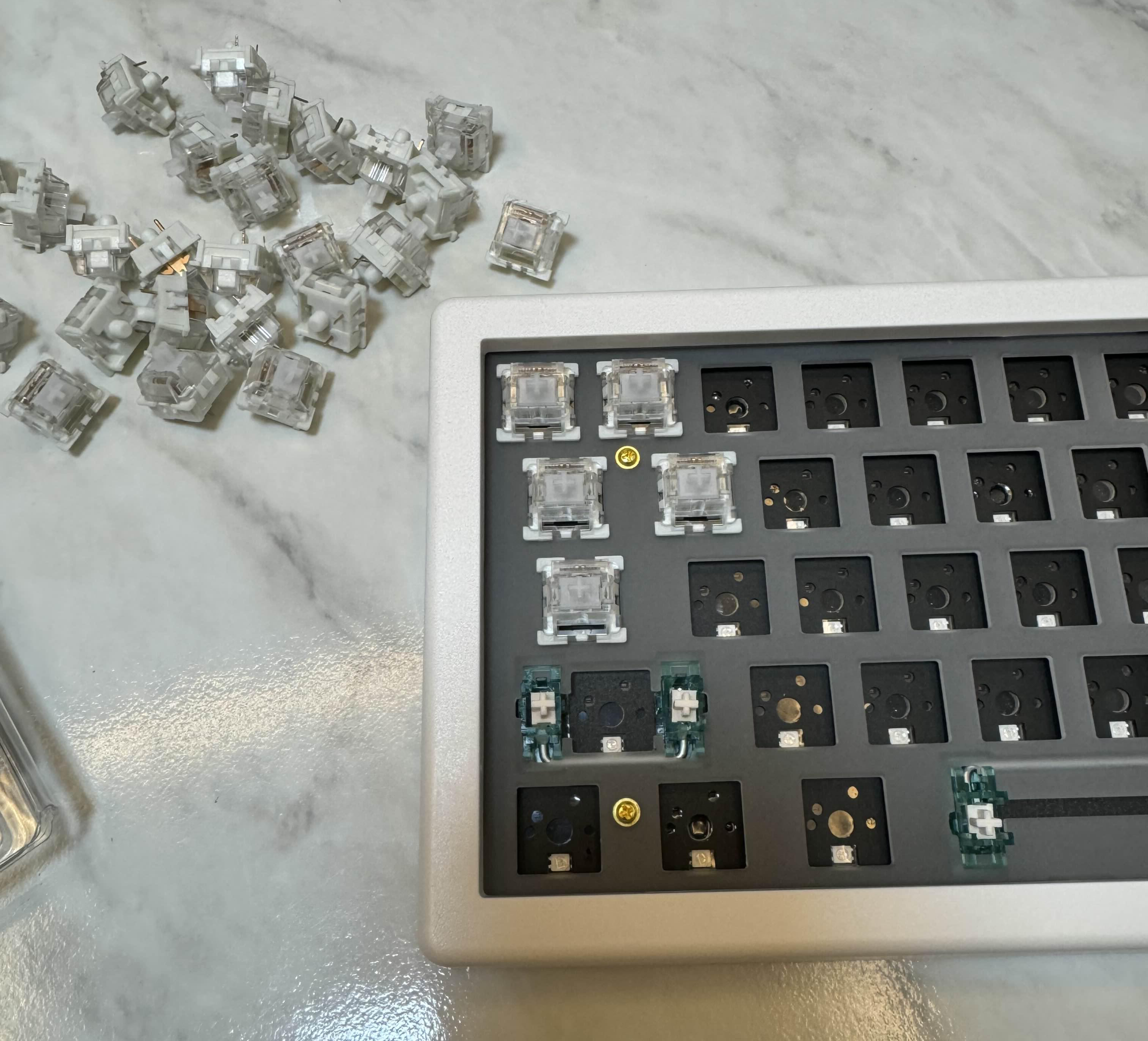 근데 개스킷 키보드가 텐션이 좀 있어서 스위치 장착하는데 꽤 힘들었어요.. ㅠㅠ 손 빠지는 줄😂