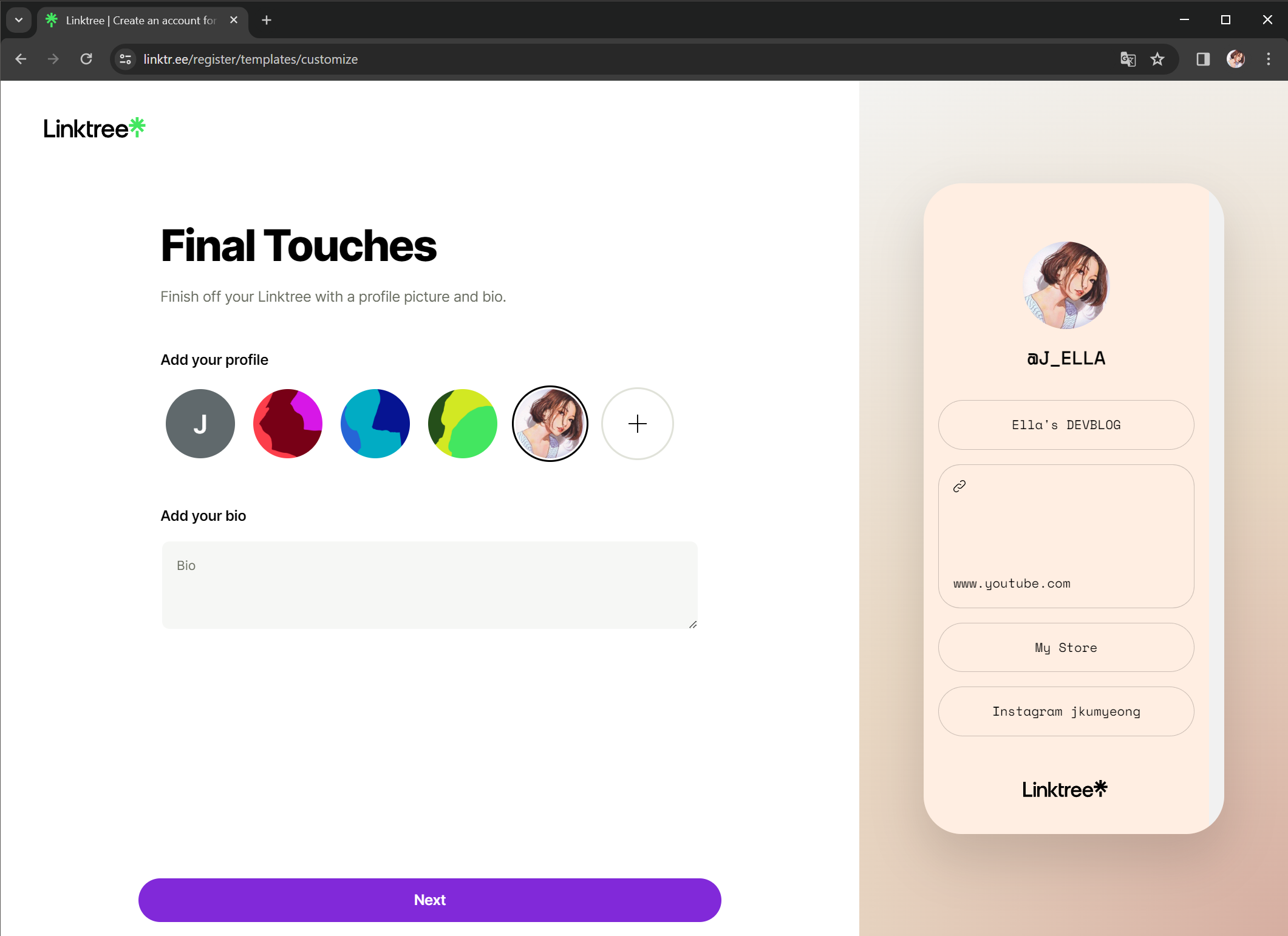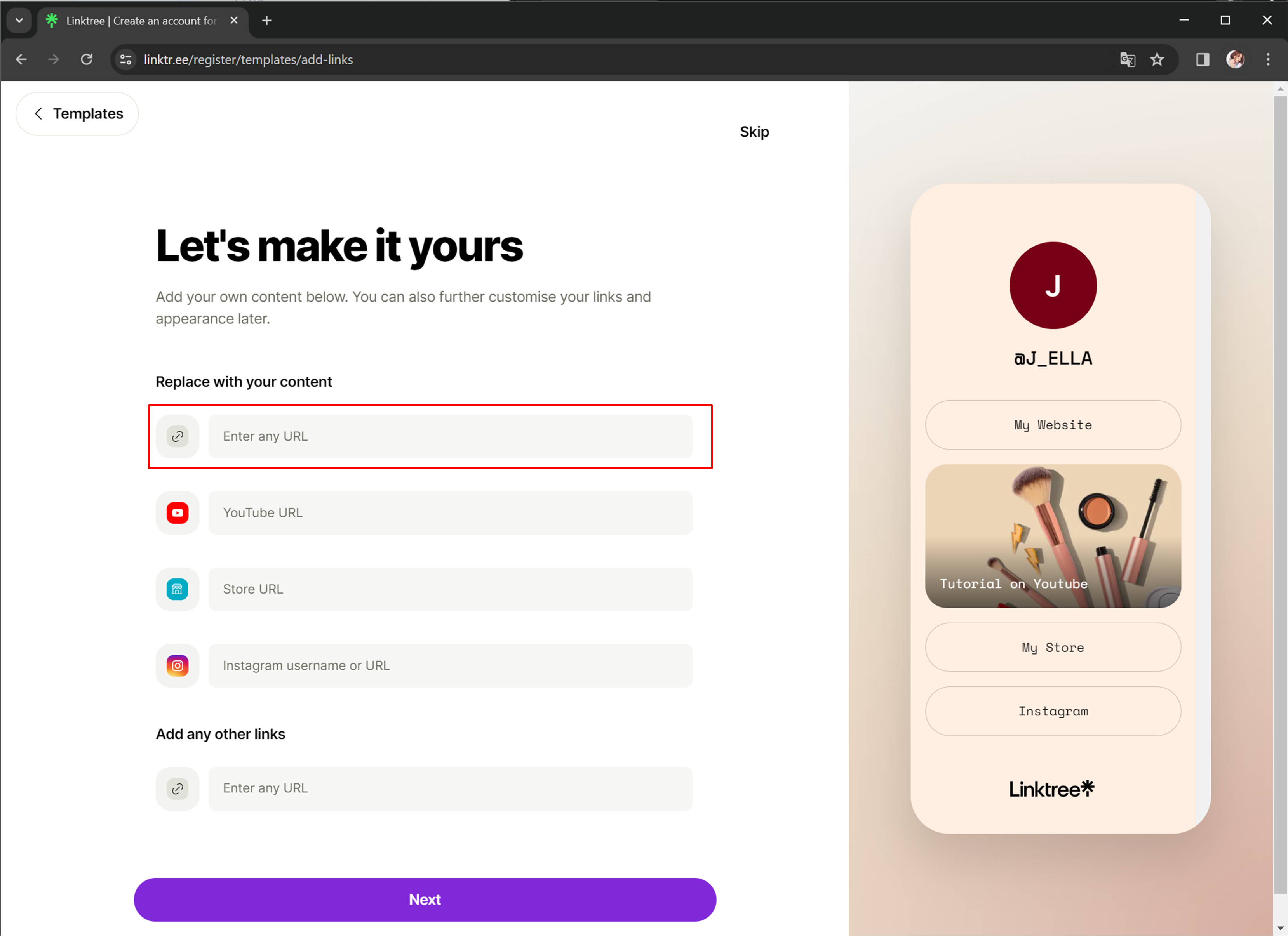 STEP 2. 링크트리 템플릿 만들기 (초기 설정 화면)