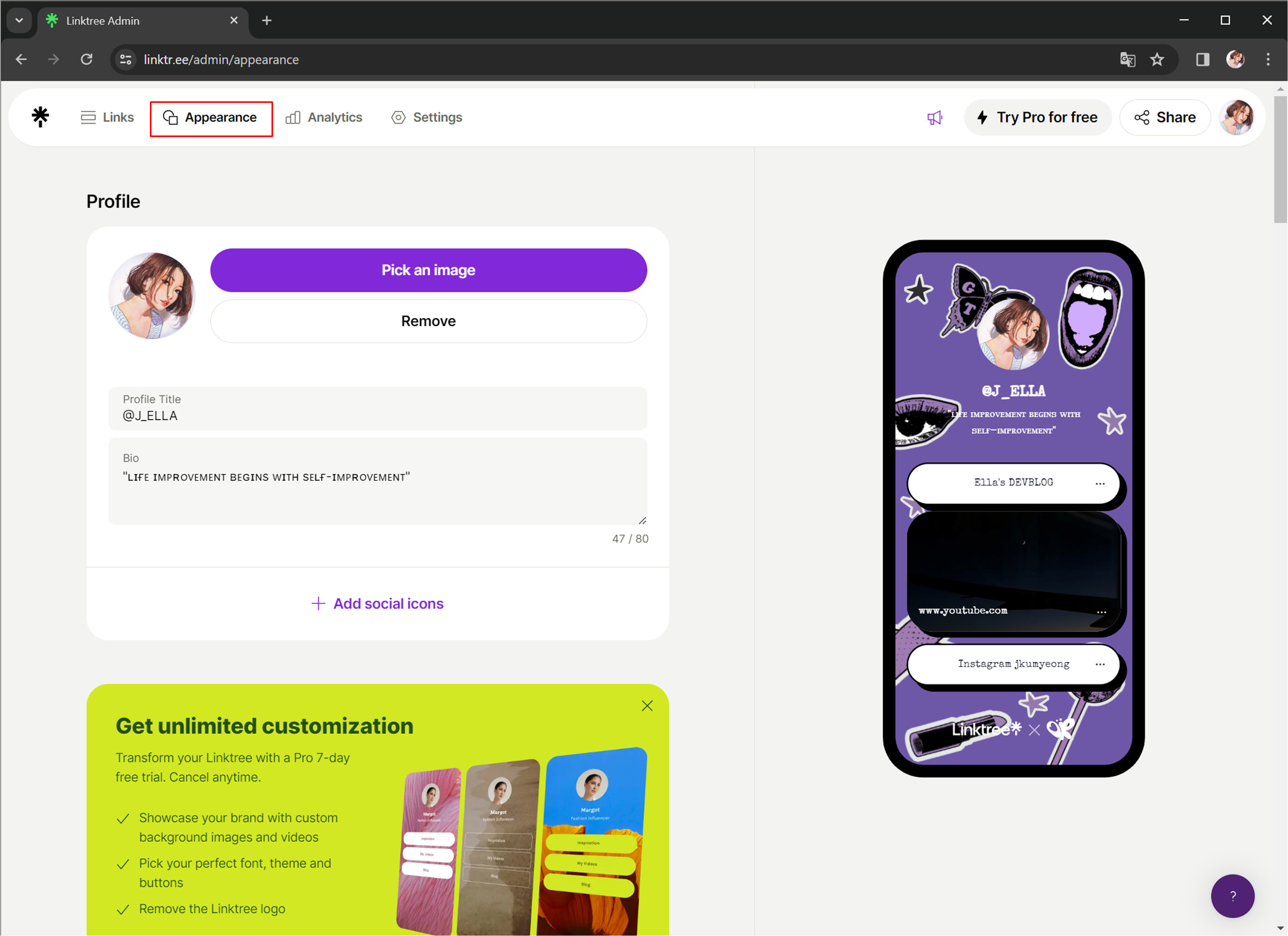 그럼 본인 링크트리가 완성됩니다!