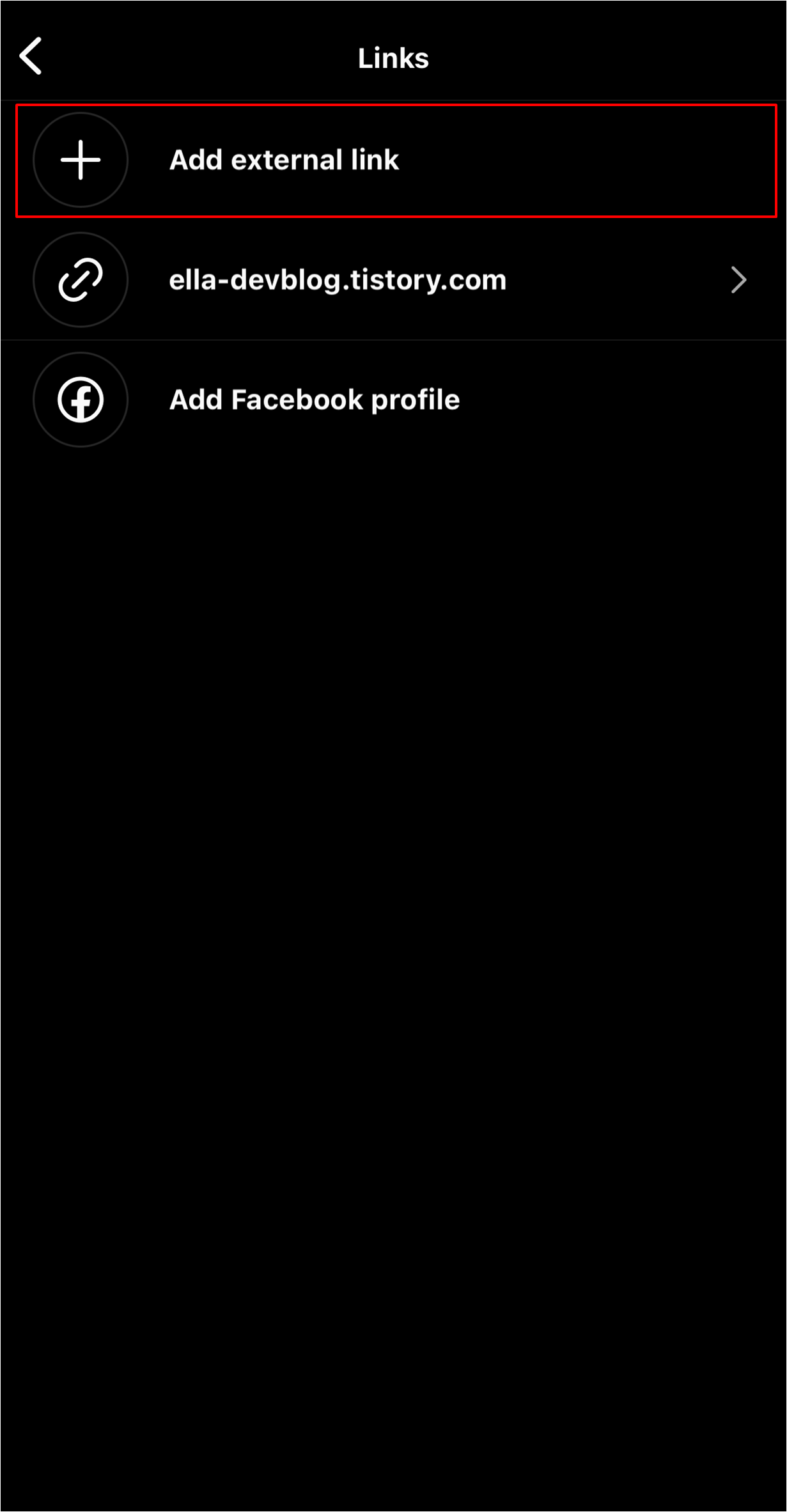 좌측 상단에 Links 버튼을 누르면 링크 편집 화면으로 넘어갑니다.