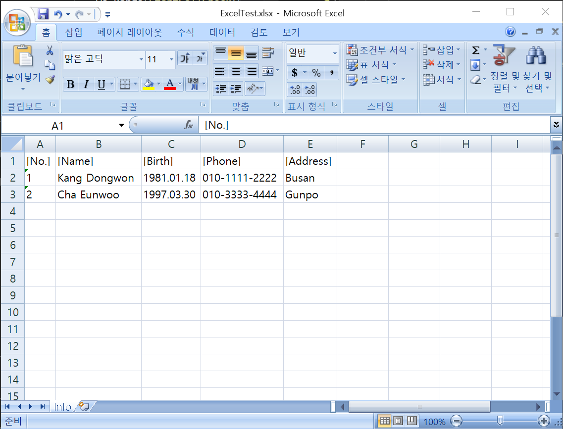 //[No.] | [Name] | [Birth] | [Phone] | [Address]
