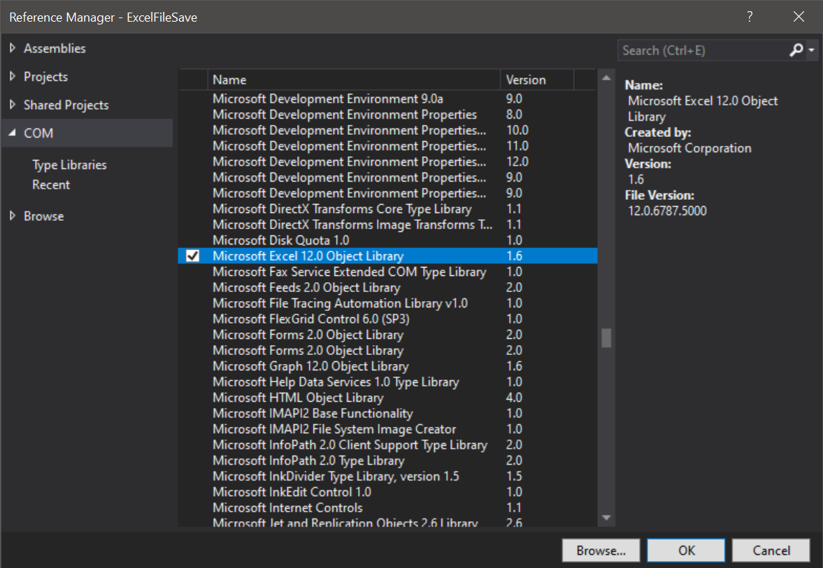 Excel.Application을 사용해야 하는데, 위와 같이 에러가 나온다면,