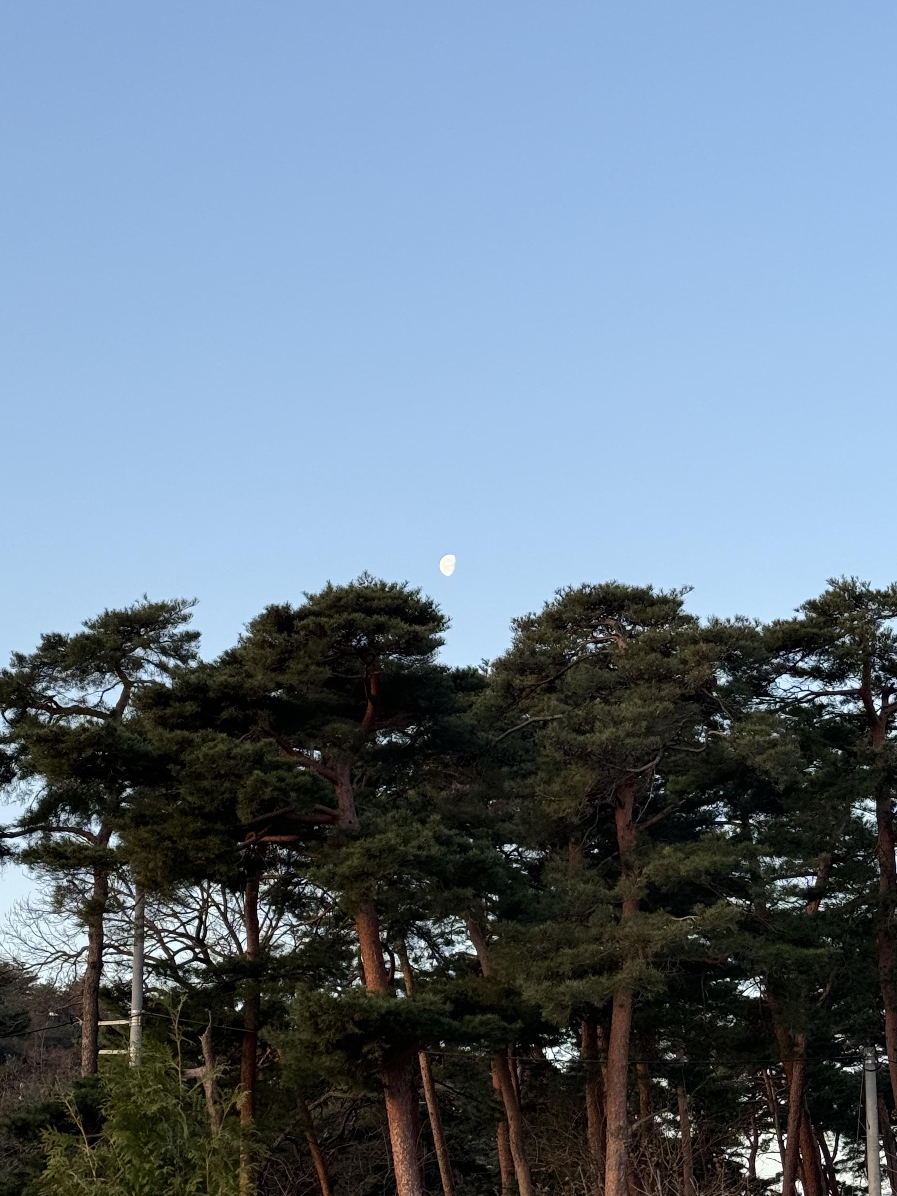 새벽에 찍은 미처 모습을 감추지 못한 달이에요.