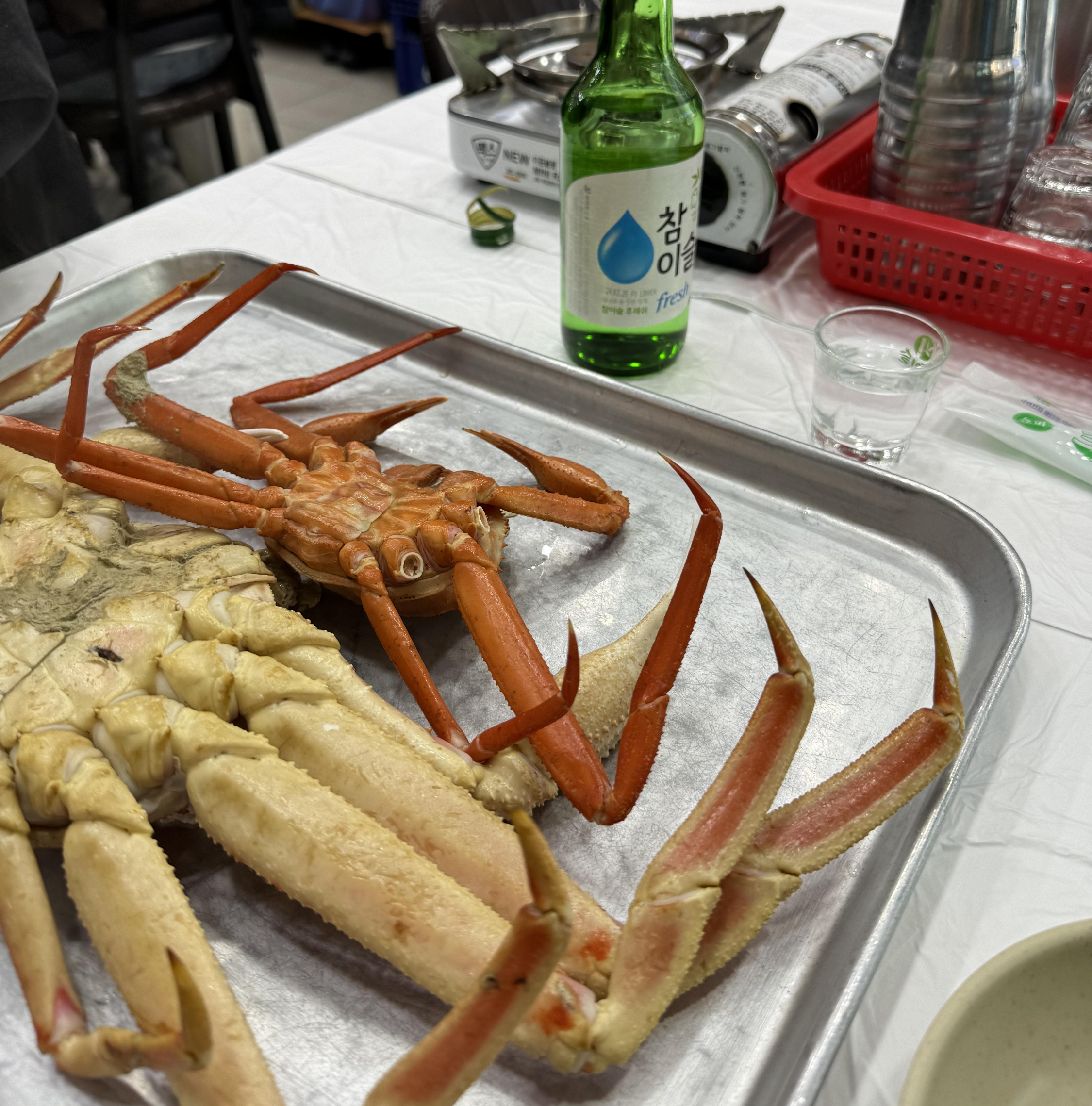 시장에서 대게를 고르고 가게로 가서 먹었어요. <북청 해장국>