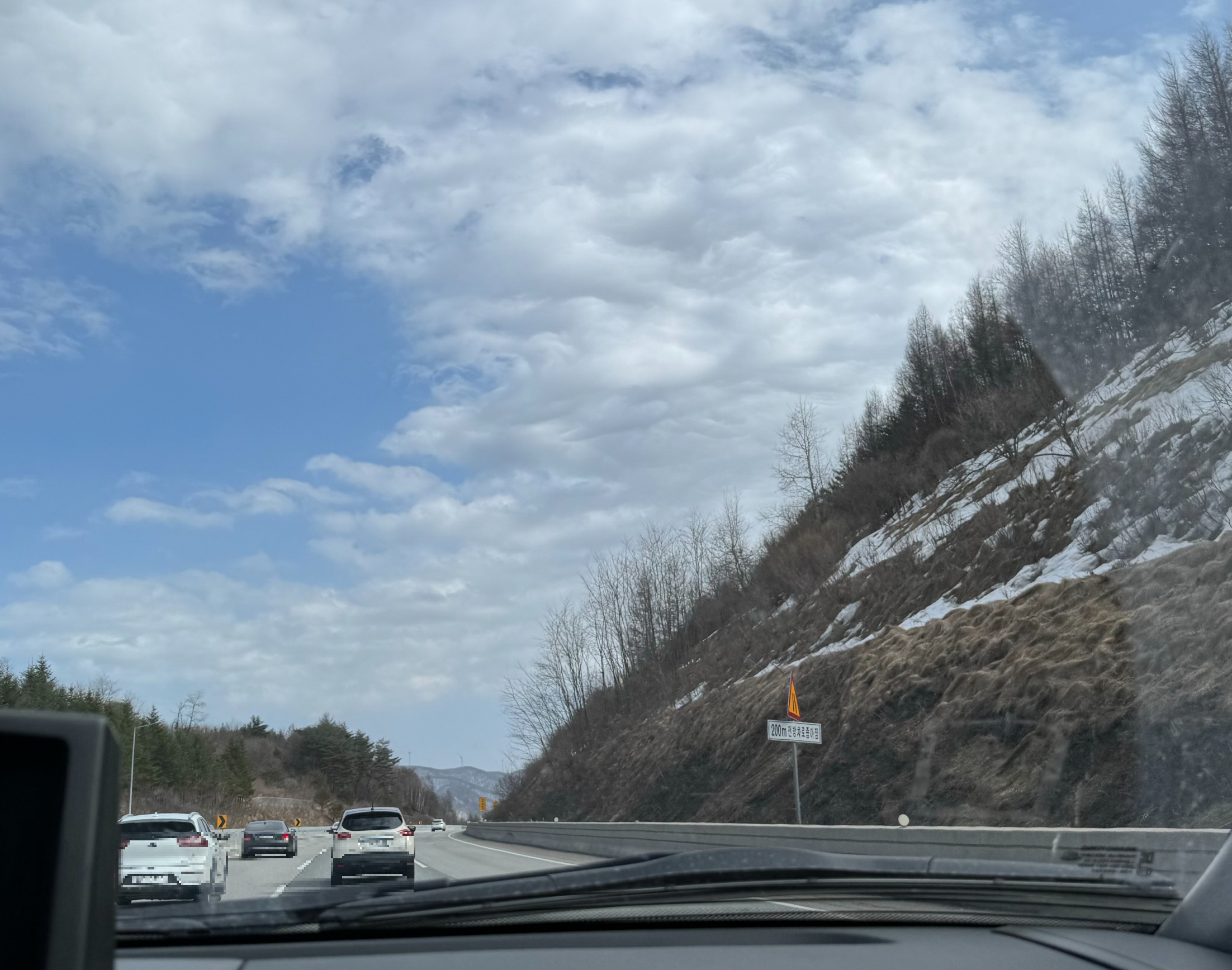 봄인데,, 대관령 지나는데 눈이 아직 안 녹았어요.