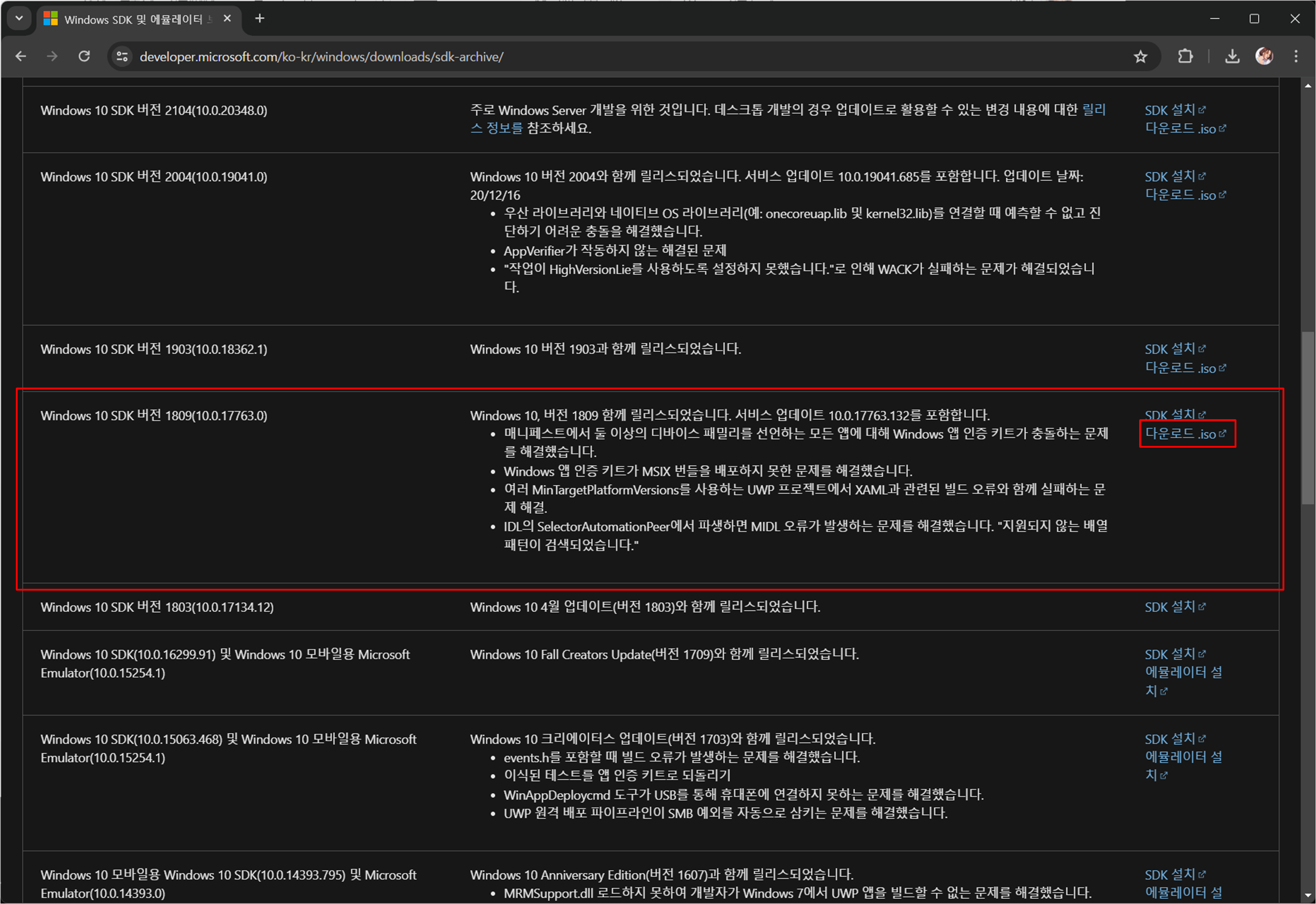 https://developer.microsoft.com/ko-kr/windows/downloads/sdk-archive/