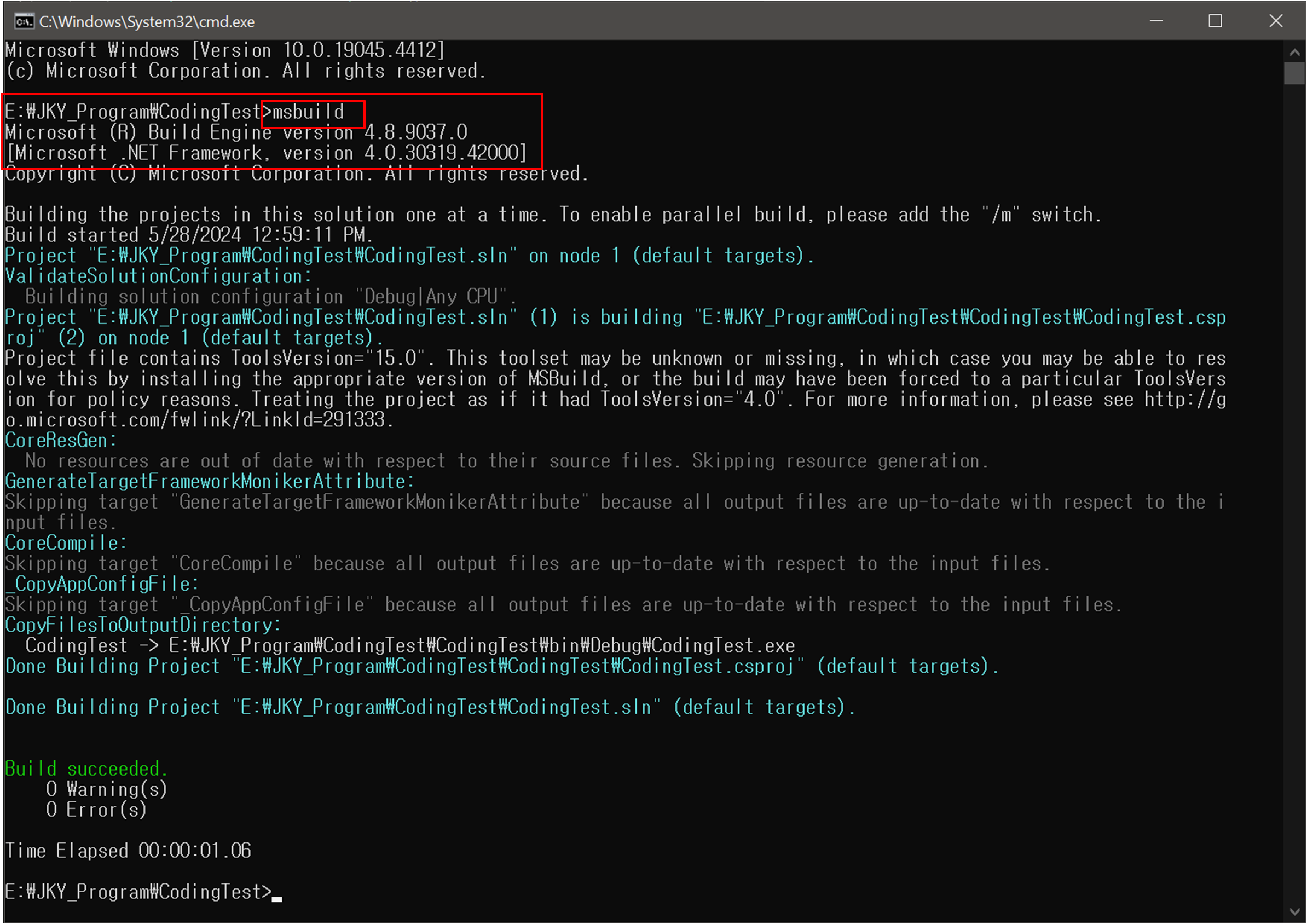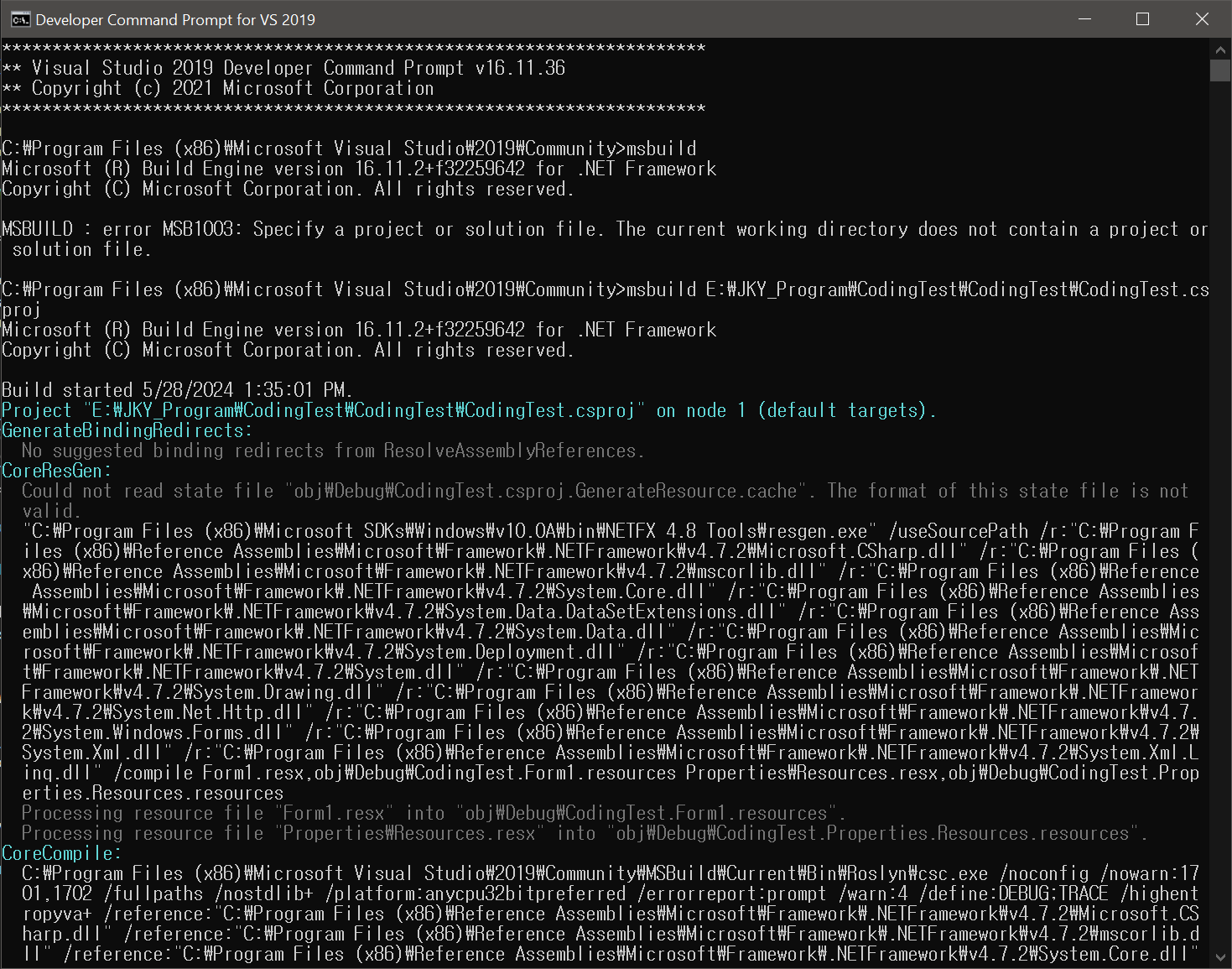 ํด๋น ํ๋ก์ ํธ ๊ฒฝ๋ก์์๋ >msbuild๋ง ์ ๋ ฅํด๋ ๋น๋ ์์